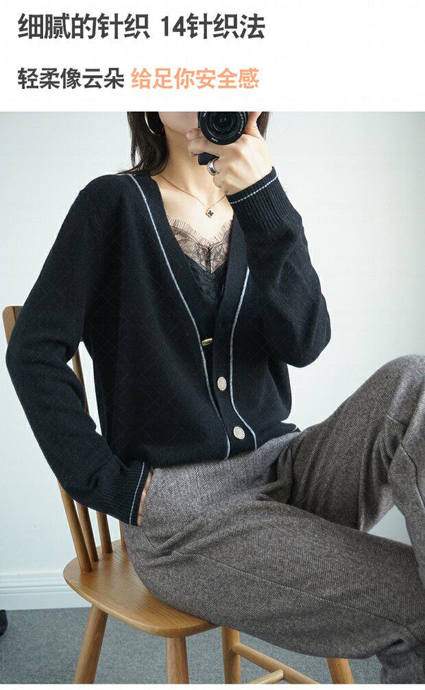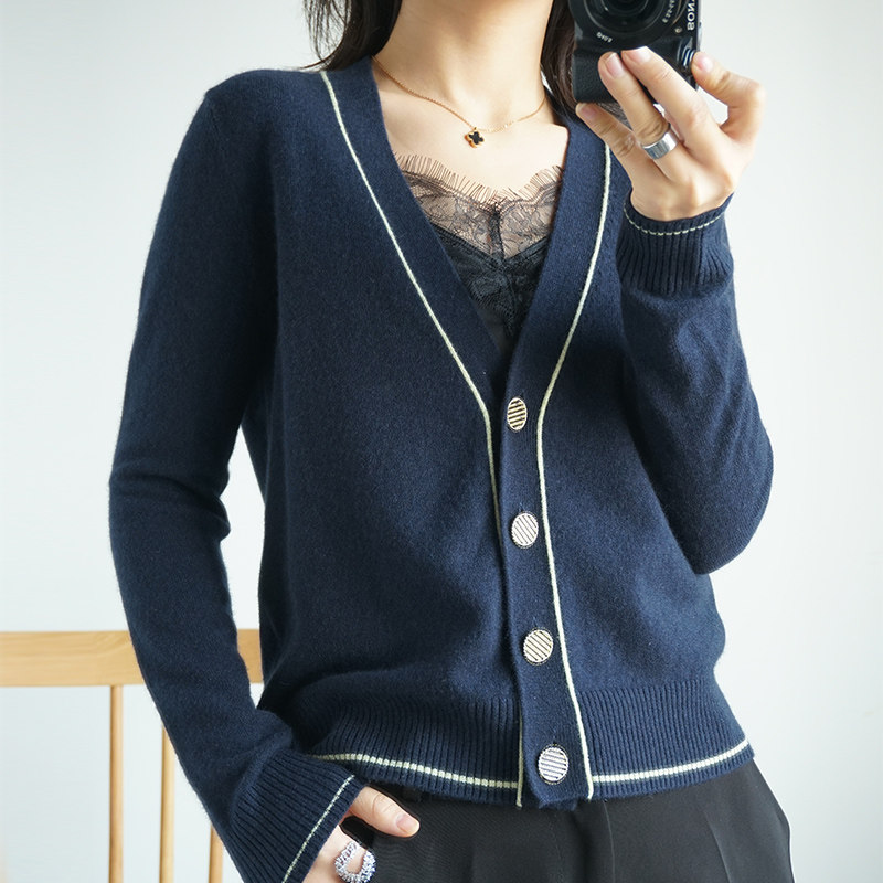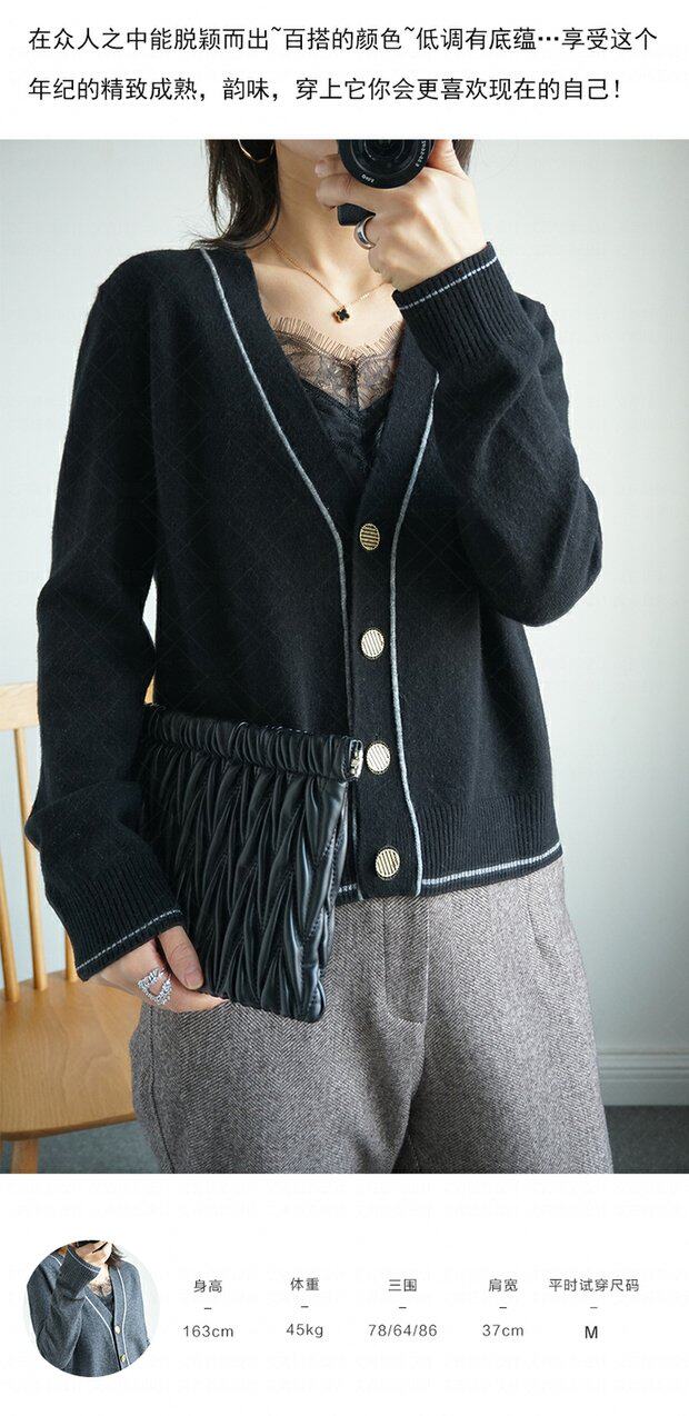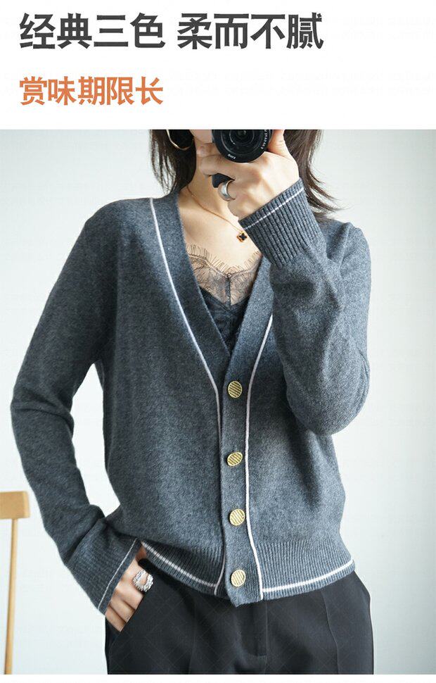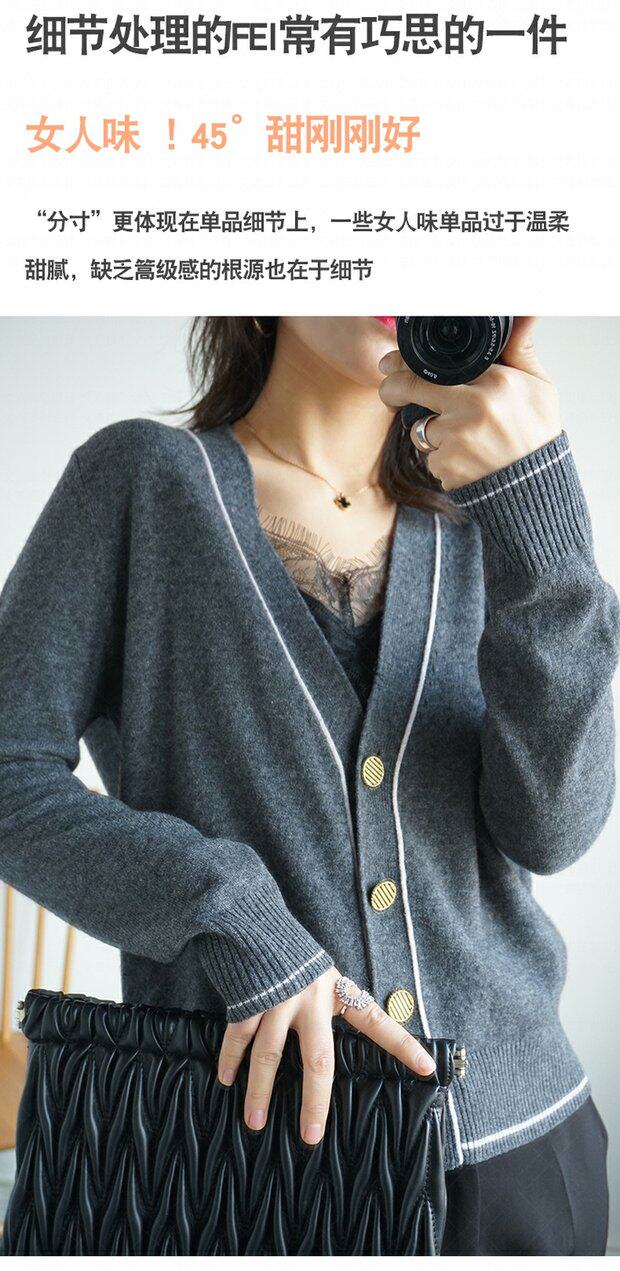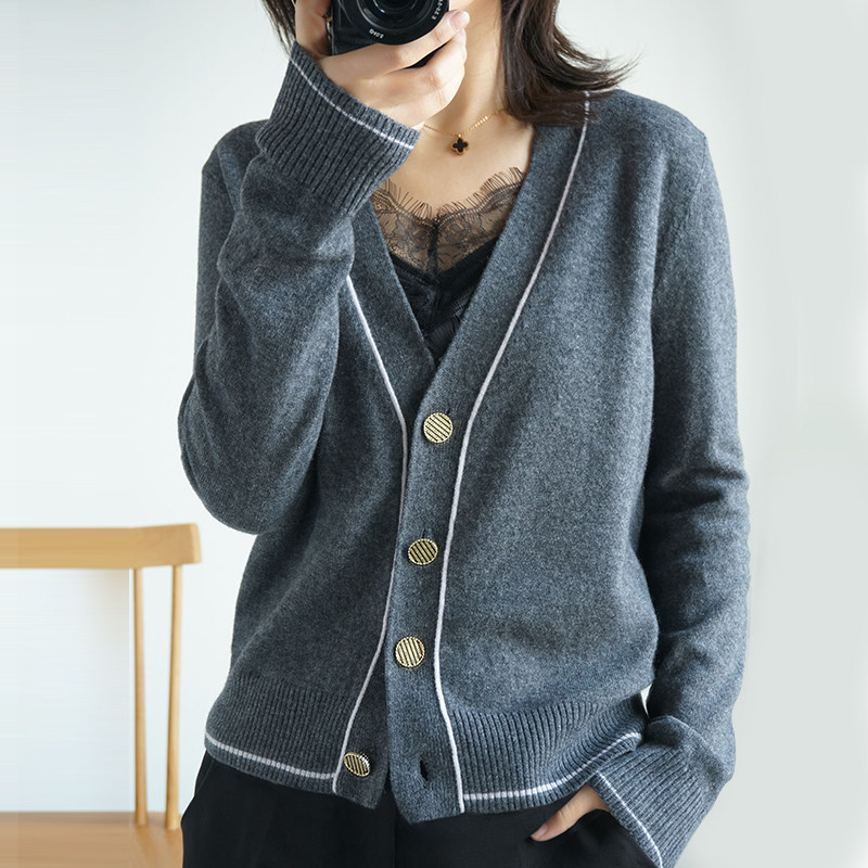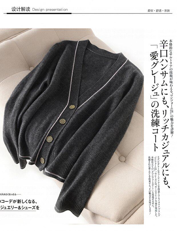 Осенний трикотажный короткий кардиган, тонкая куртка, лонгслив, оверсайз, в корейском стиле, в стиле Шанель, V-образный вырез