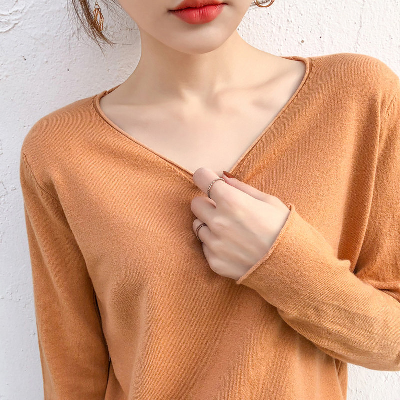 Демисезонный кашемировый трикотажный свитер, V-образный вырез, оверсайз, большой размер