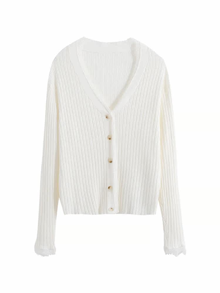 弥古 Белый кружевной трикотажный лонгслив, осенний дизайнерский короткий кардиган, тренд сезона