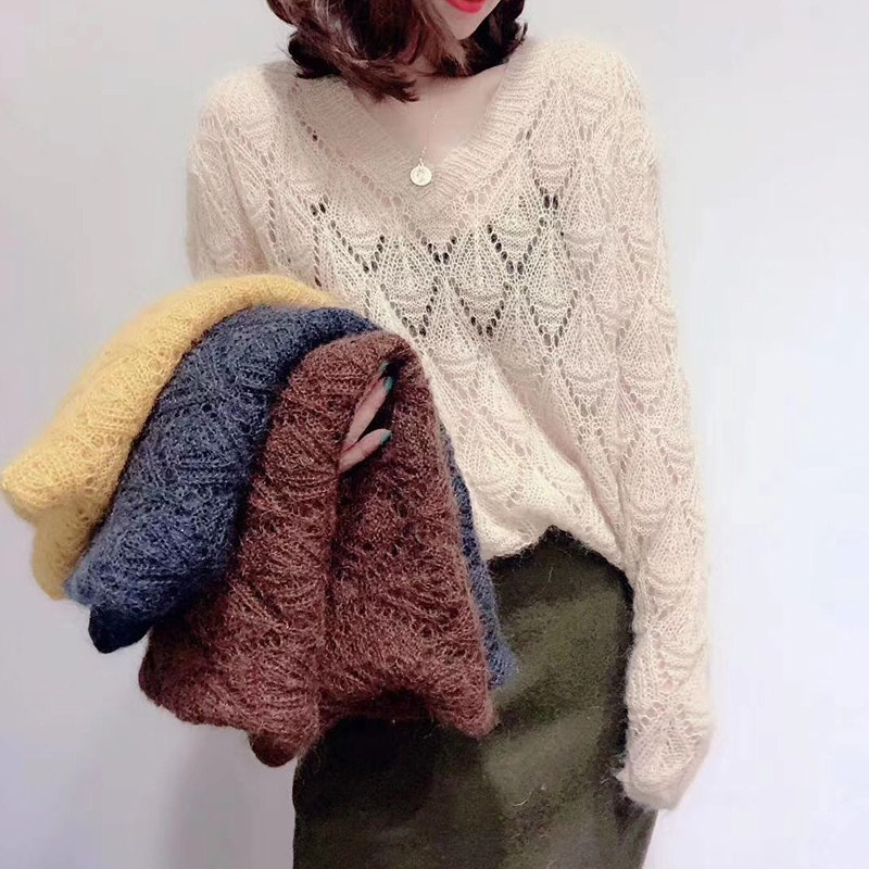 Трикотажный весенний тонкий свитер, европейский стиль, 2020, тренд сезона, оверсайз, V-образный вырез