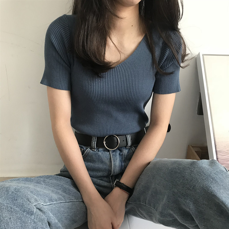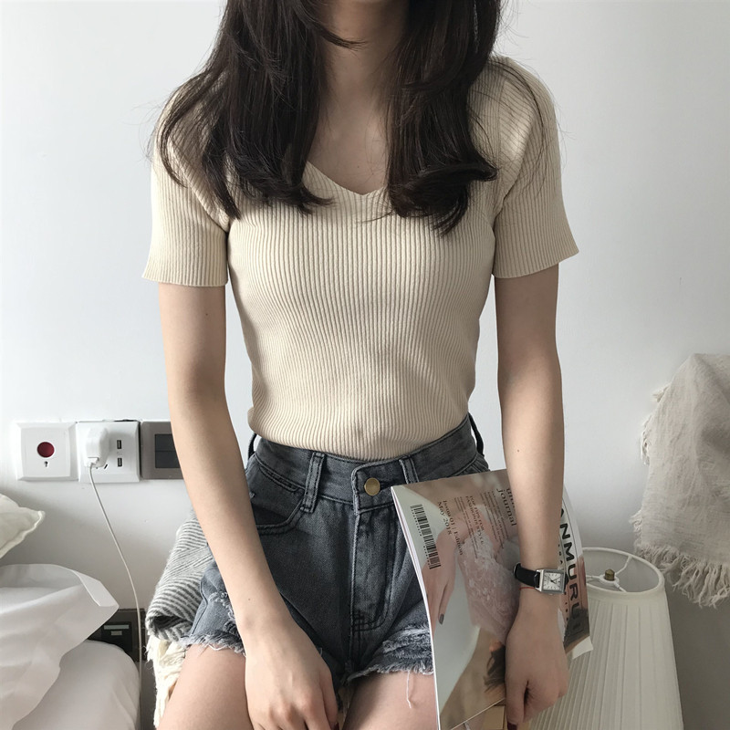Осенний приталенный базовый трикотажный брендовый свитер для школьников и студентов, в корейском стиле, коллекция 2021, V-образный вырез