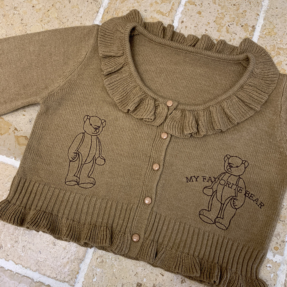 Вышитый медведь пупочный свитер, имитационный кашемир (акрил+полиэстер+специальные технологии), 560 штук, 41 длина одежды, 48*2 Бюст, ширина плеча 37, длина рукава 57.