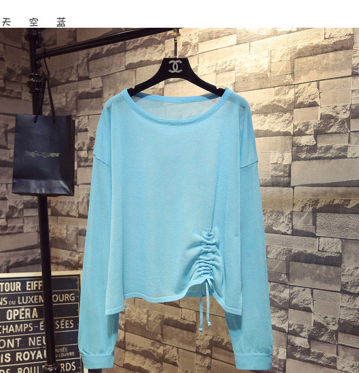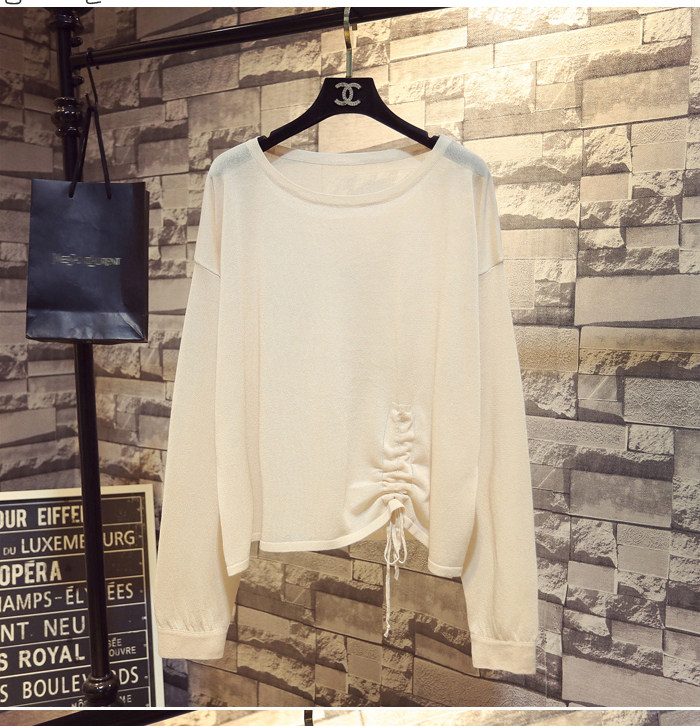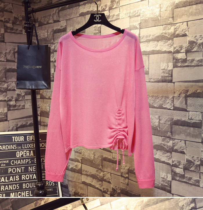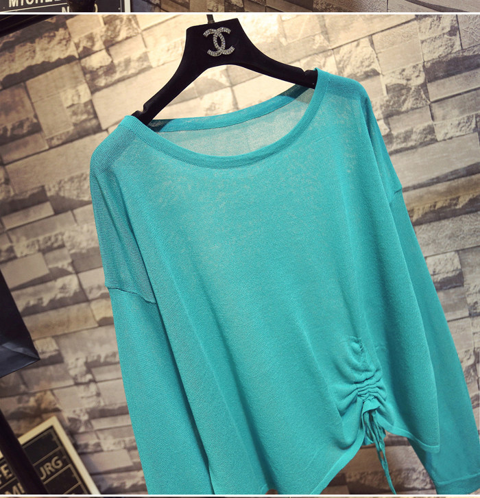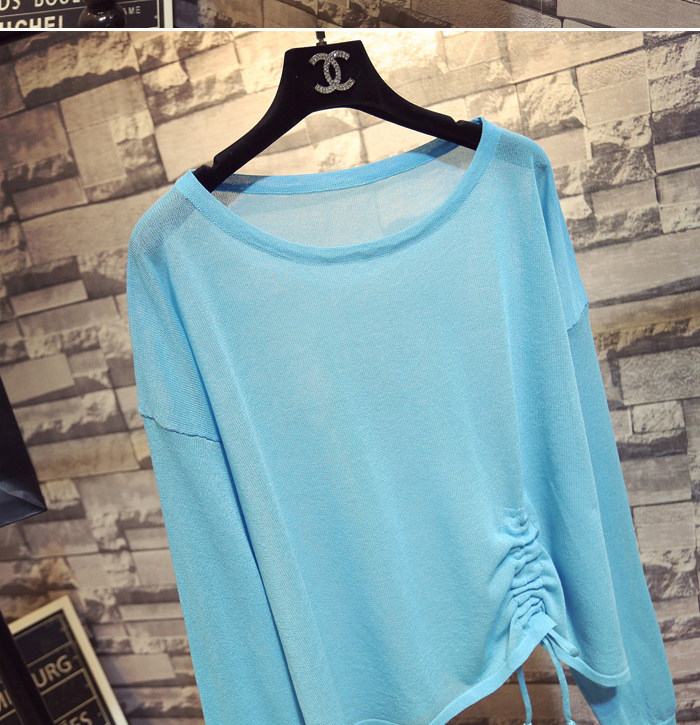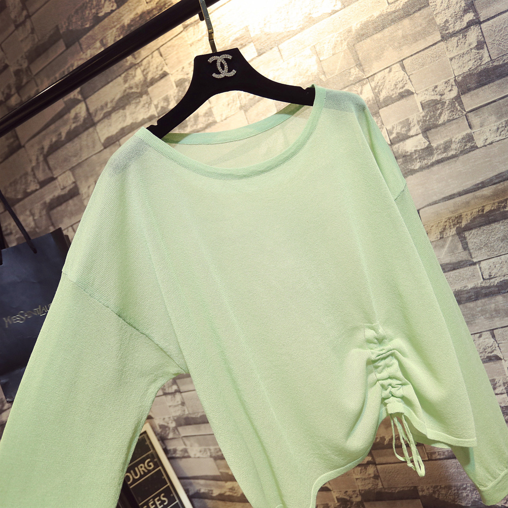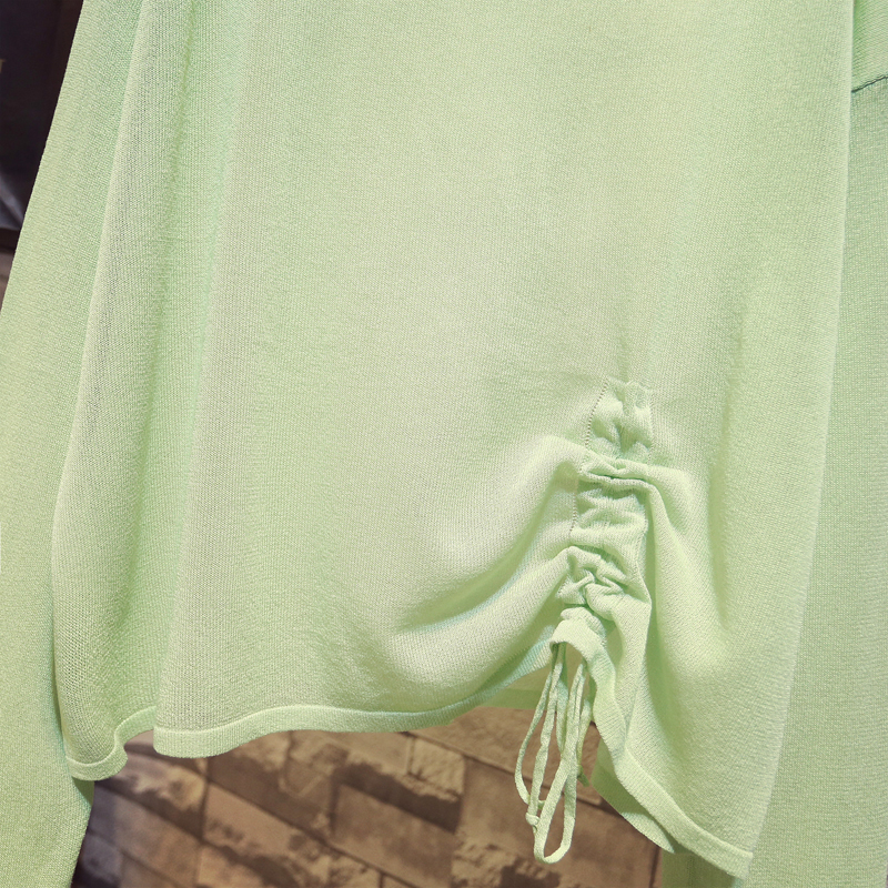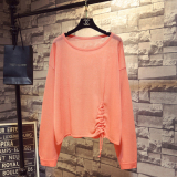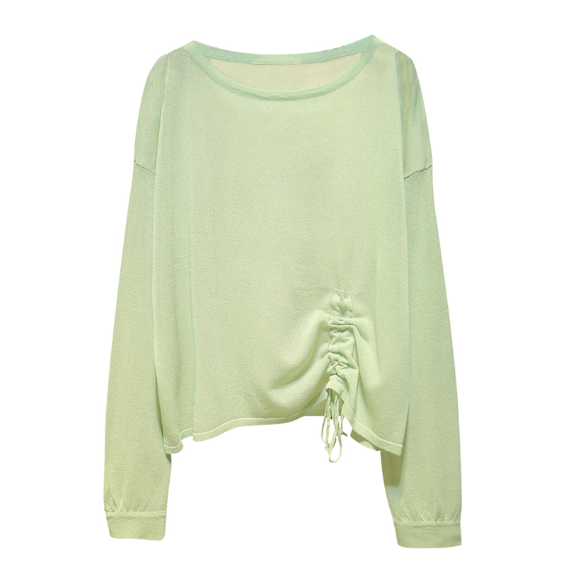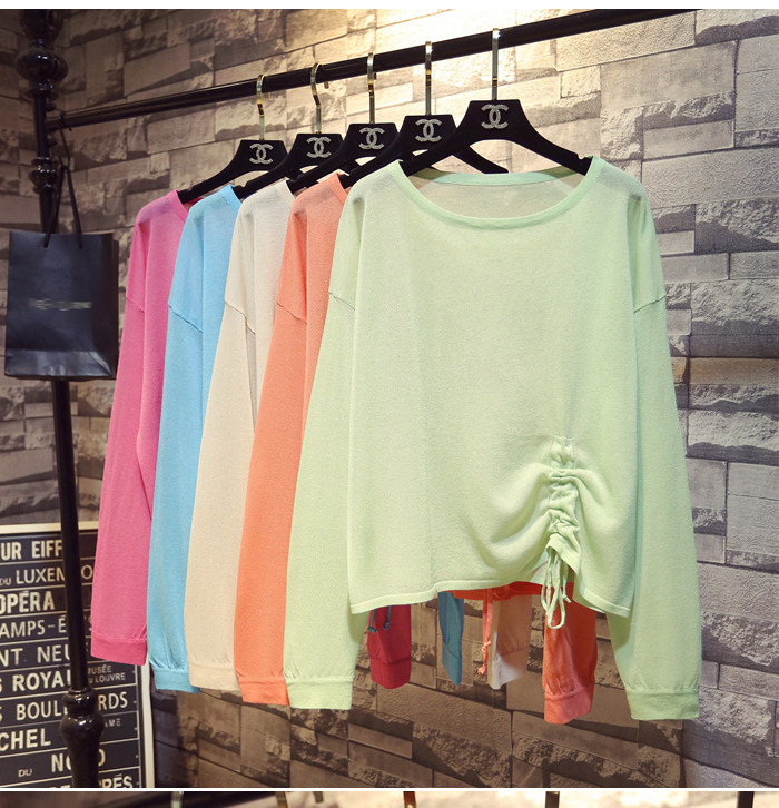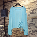 Летний тонкий трикотажный свитер, в корейском стиле, свободный крой, на шнурках, популярно в интернете, защита от солнца