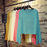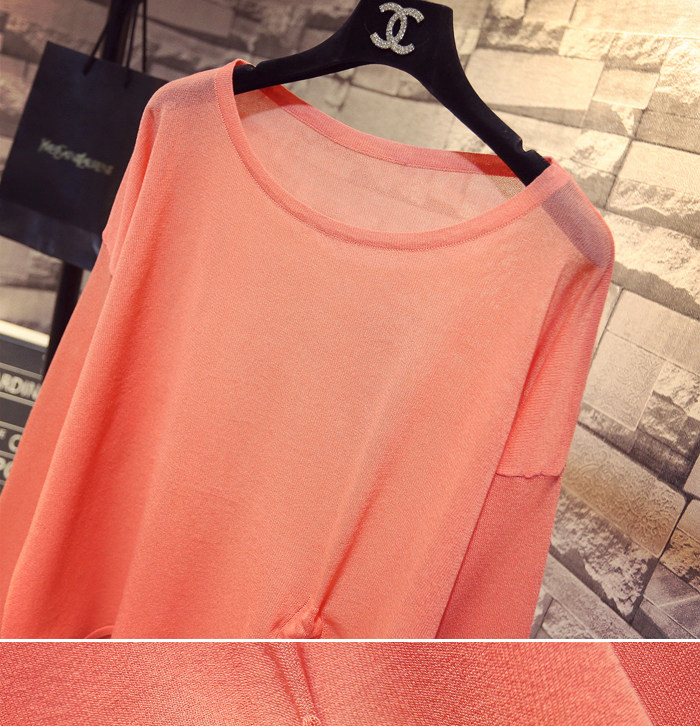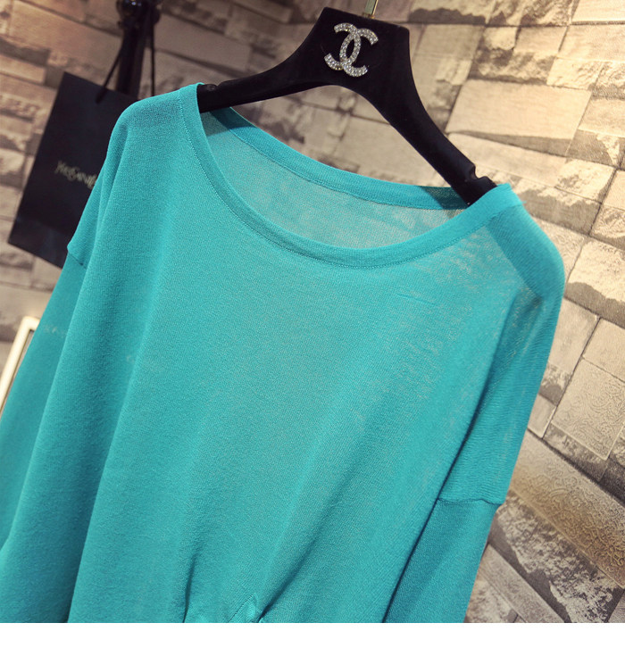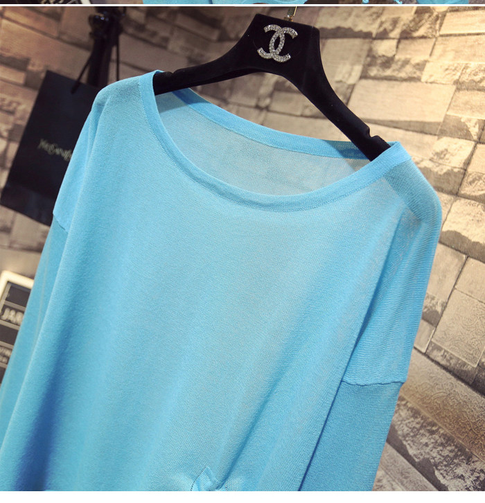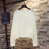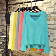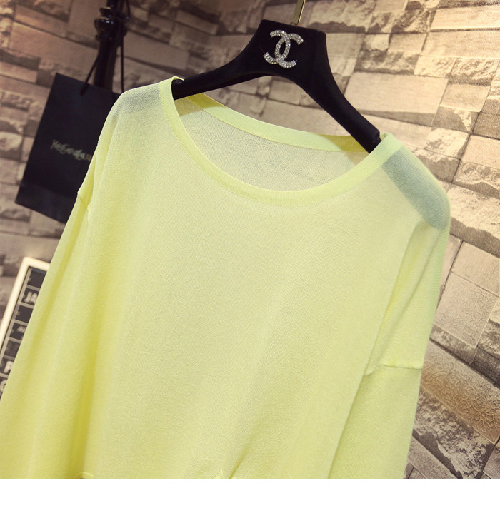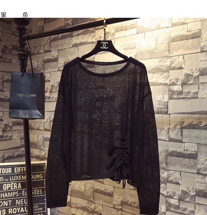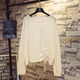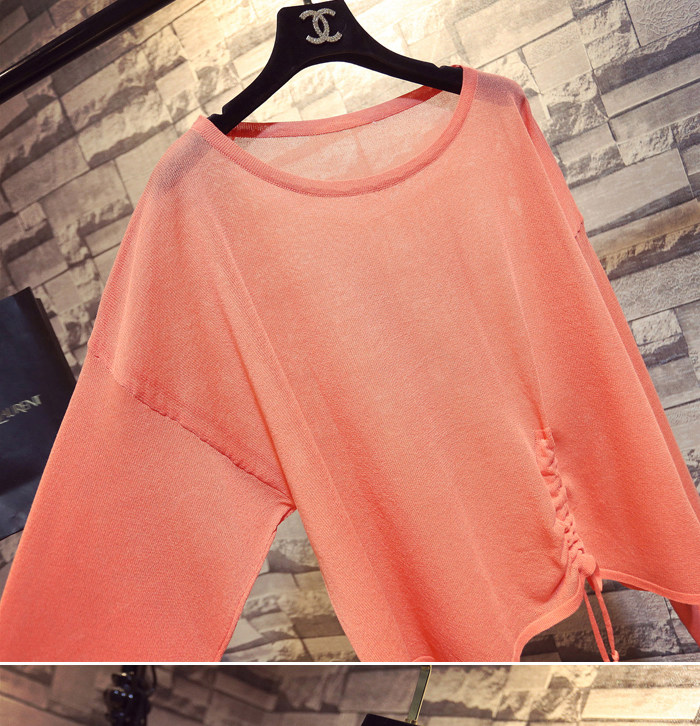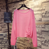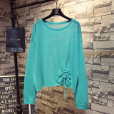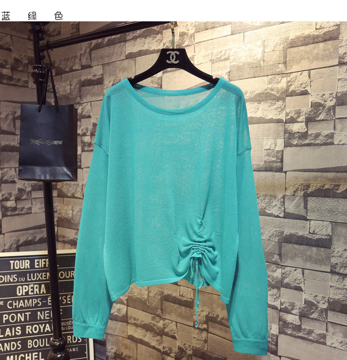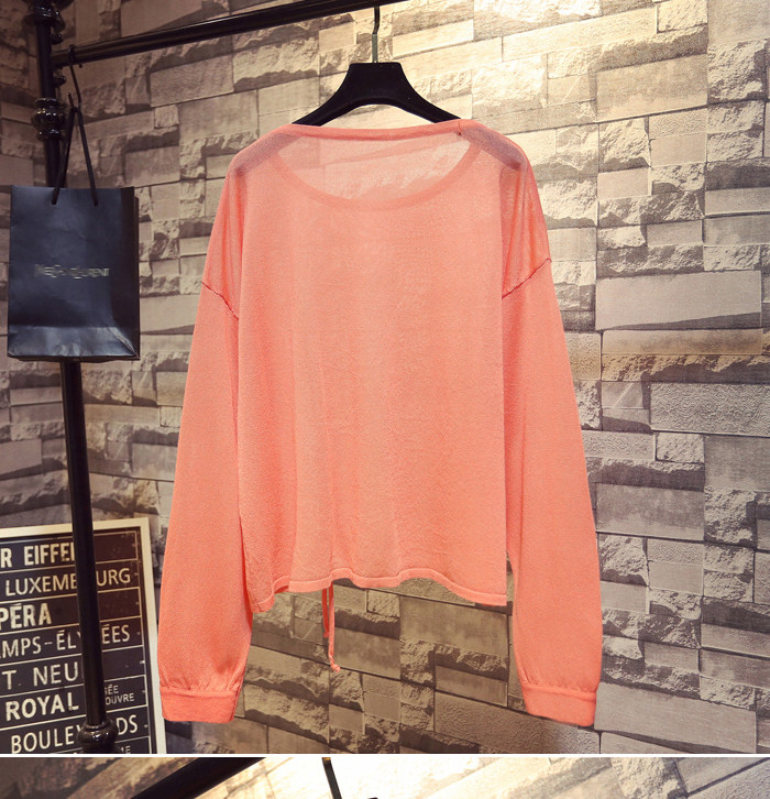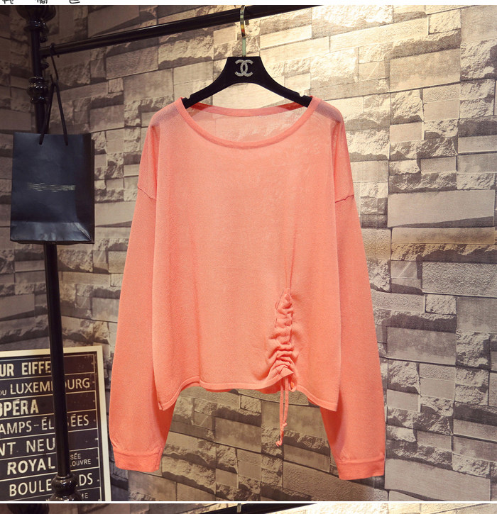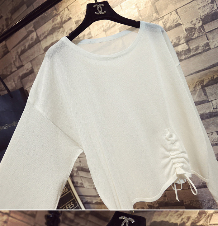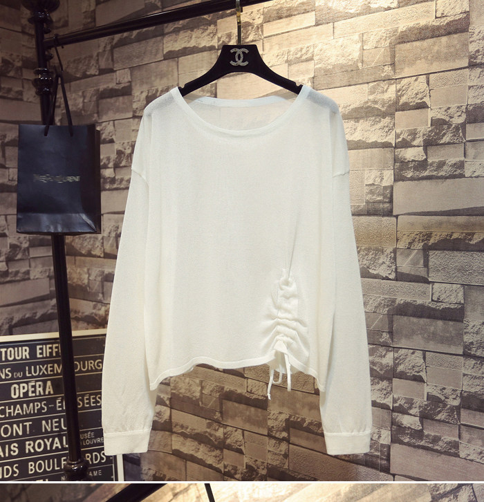 Летний тонкий трикотажный свитер, в корейском стиле, свободный крой, на шнурках, популярно в интернете, защита от солнца