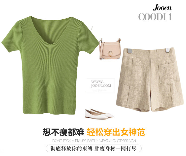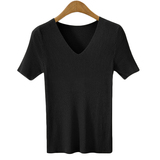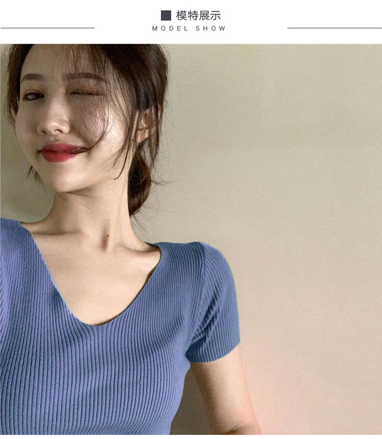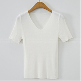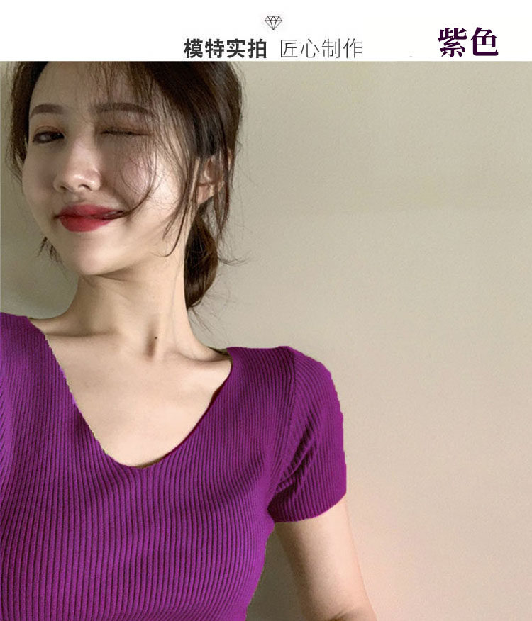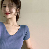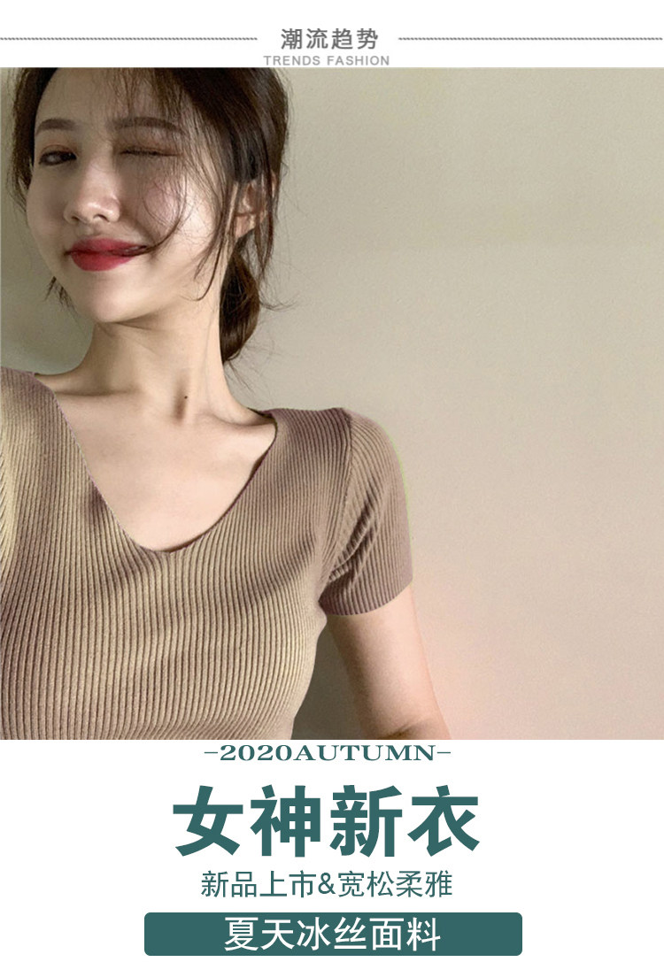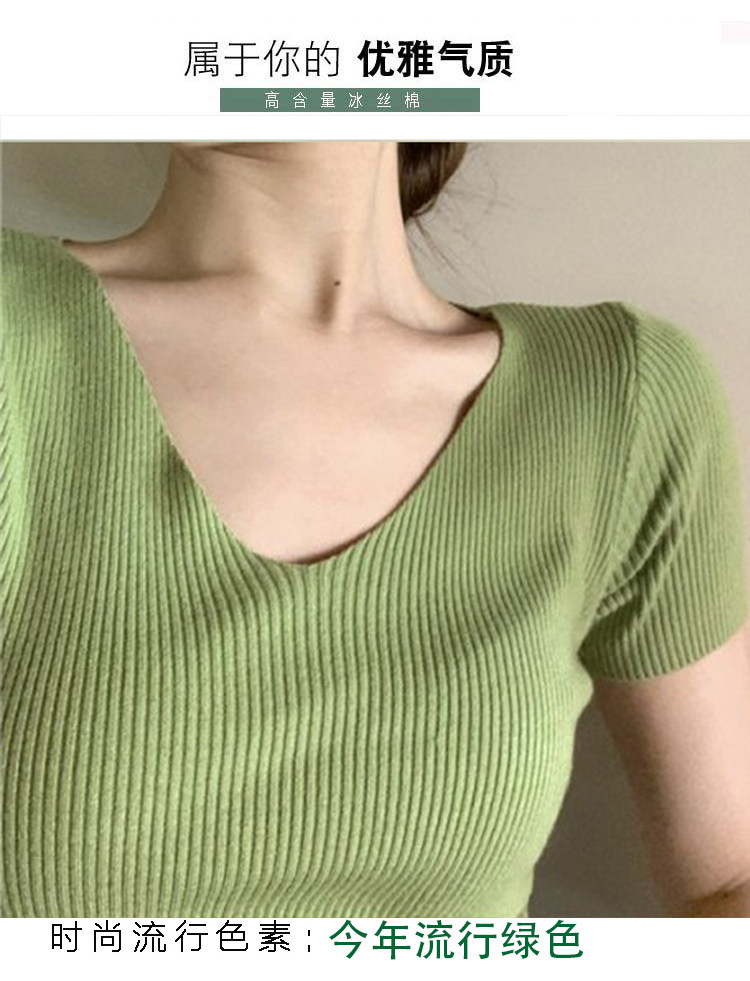 Шелковая летняя короткая приталенная футболка, дизайнерский красный трикотажный свитер, короткий рукав, коллекция 2023, V-образный вырез, в западном стиле, тренд сезона