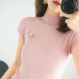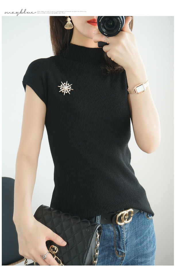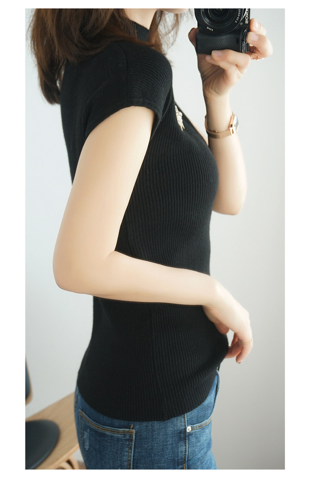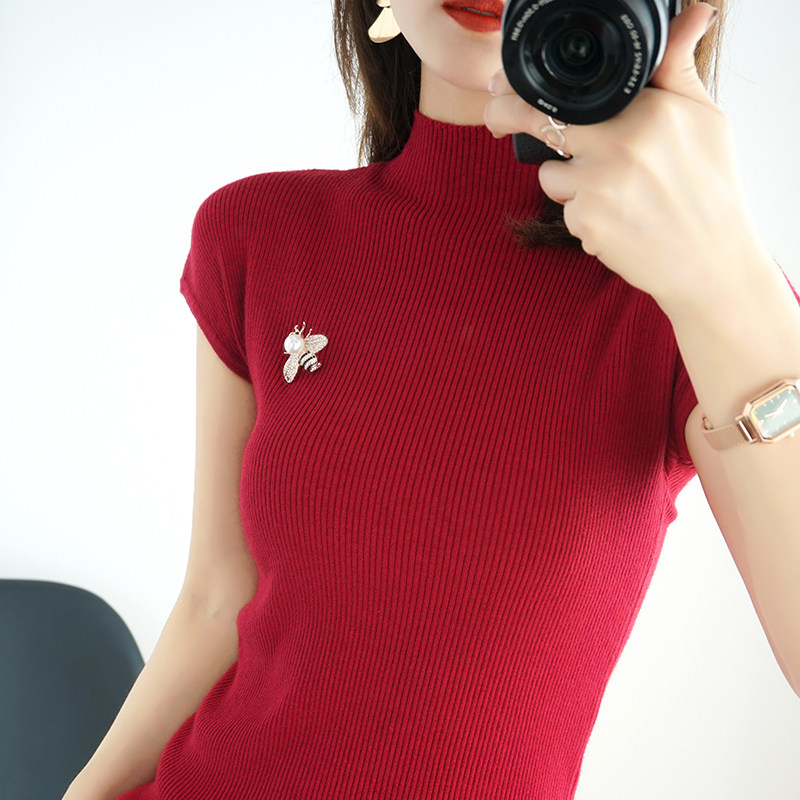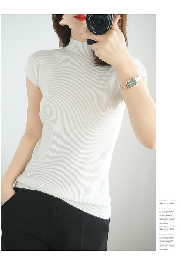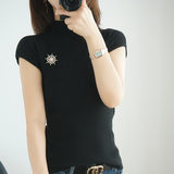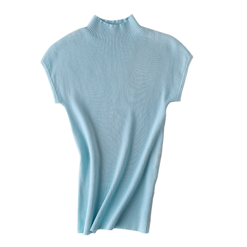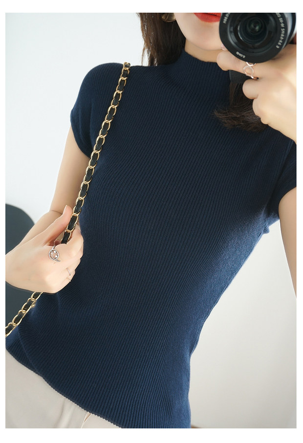 Летний шерстяной свитер, тонкая базовая приятная телу футболка, короткий рукав, 2020, высокий воротник