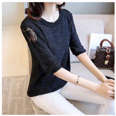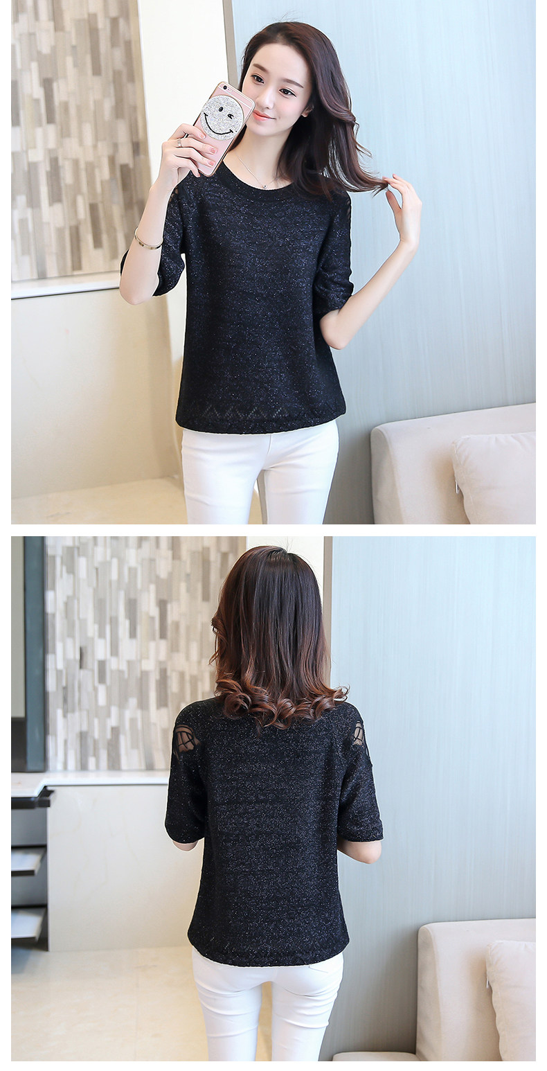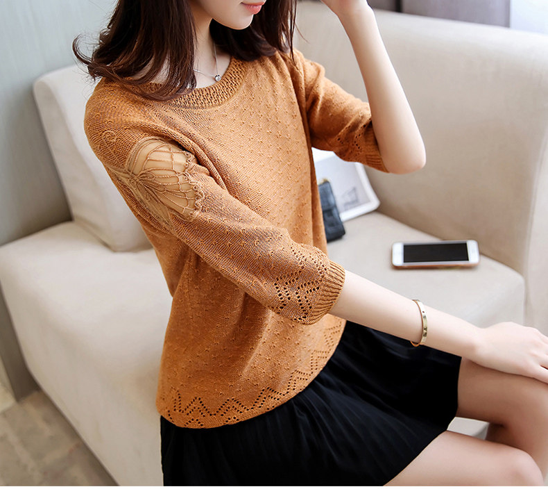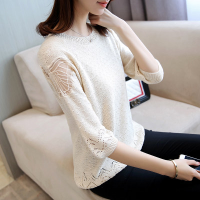Осенняя трикотажная рубашка с круглым воротником, свитер, коллекция 2023, оверсайз