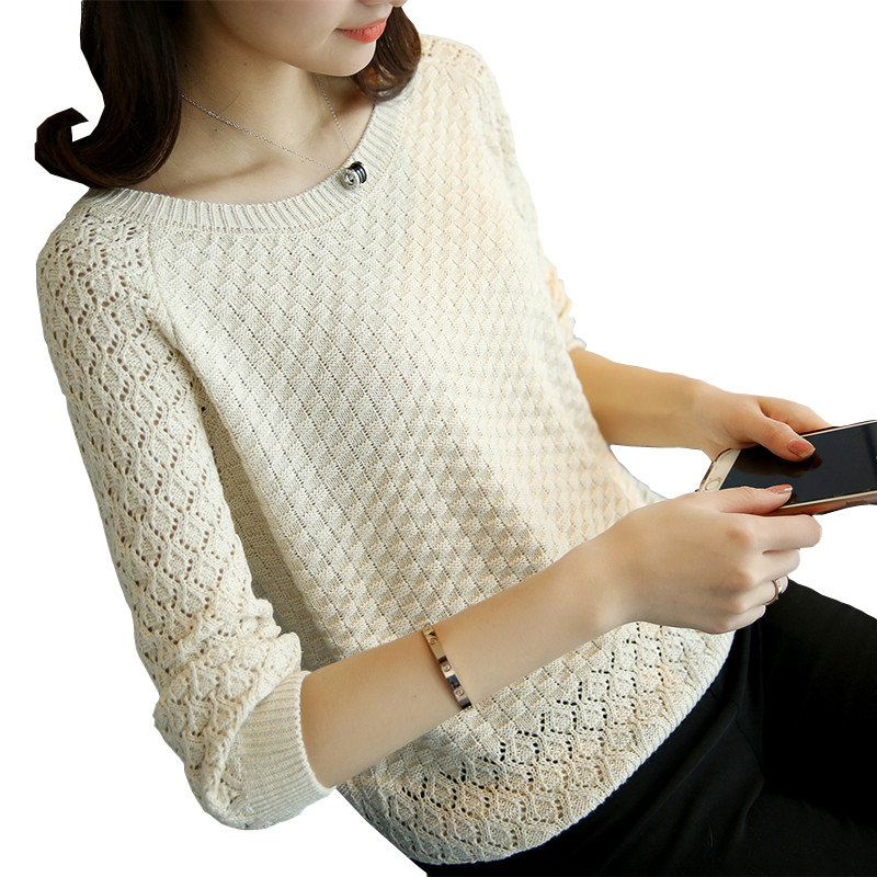 Осенний трикотажный свитер, базовый приятный телу короткий лонгслив с круглым воротником, коллекция 2023, оверсайз