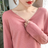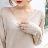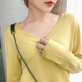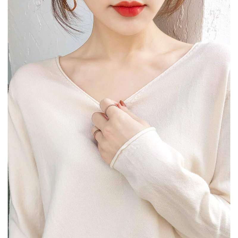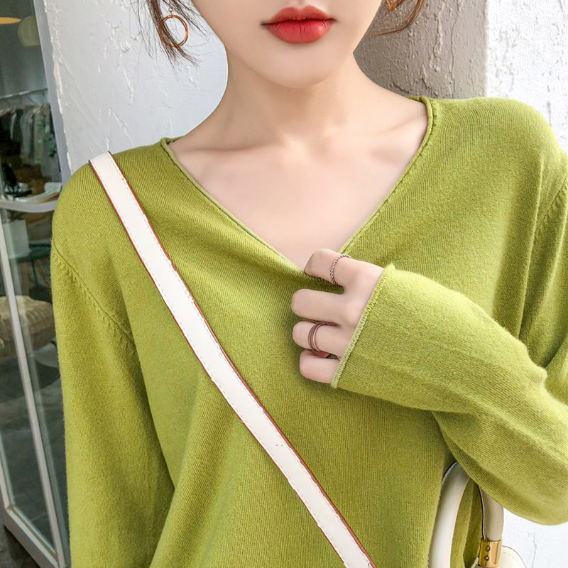 Демисезонный кашемировый трикотажный свитер, V-образный вырез, большой размер, оверсайз
