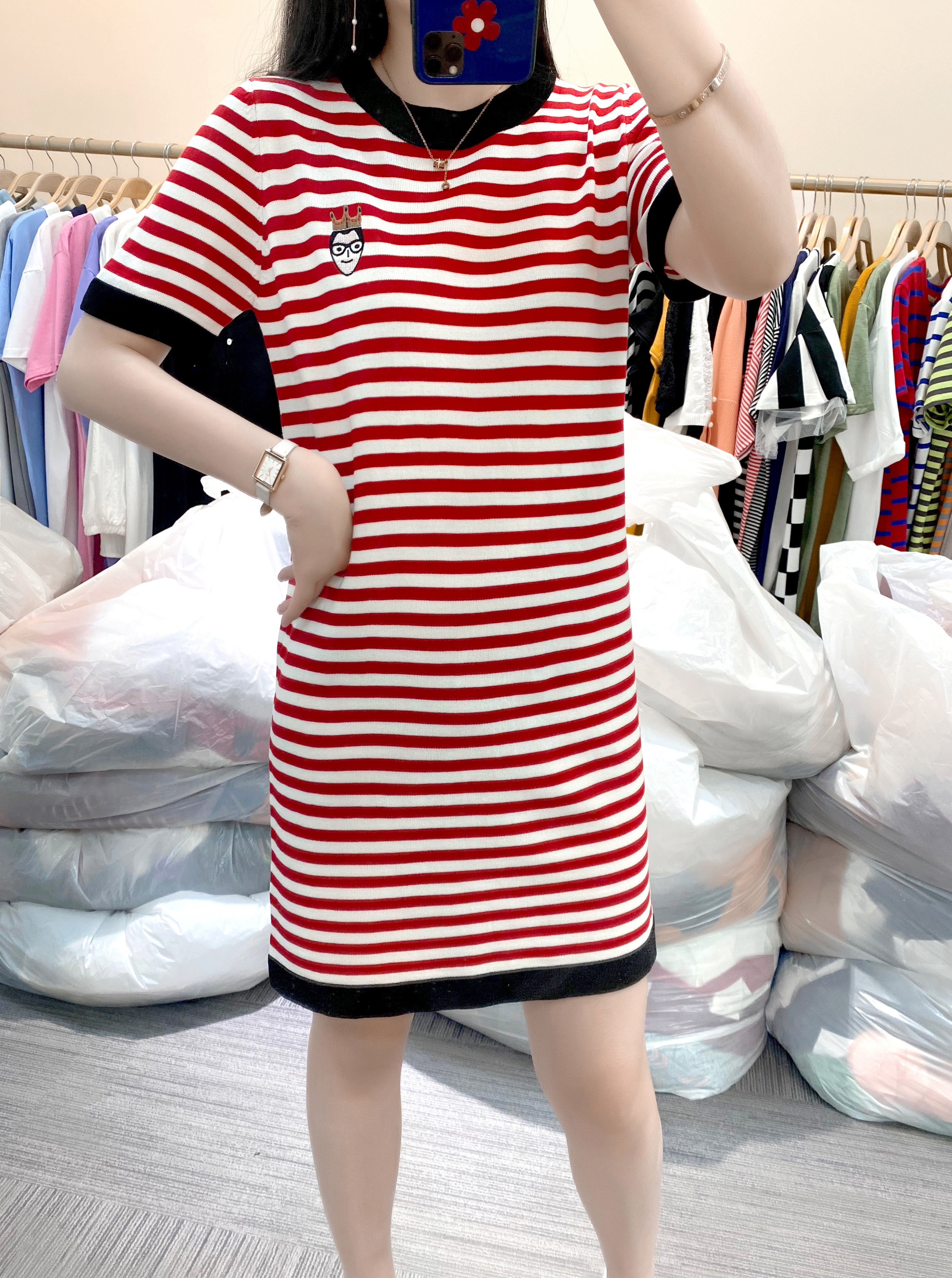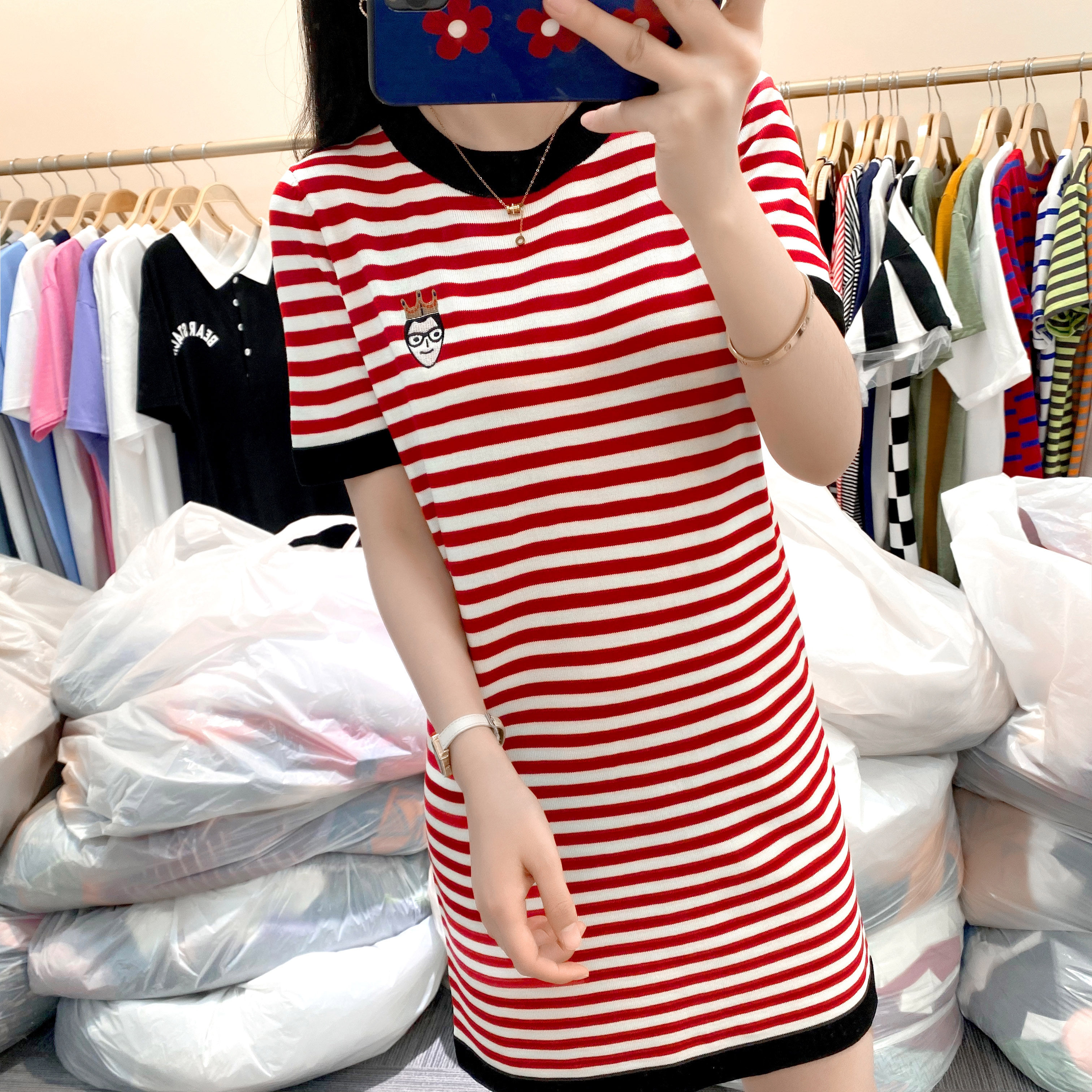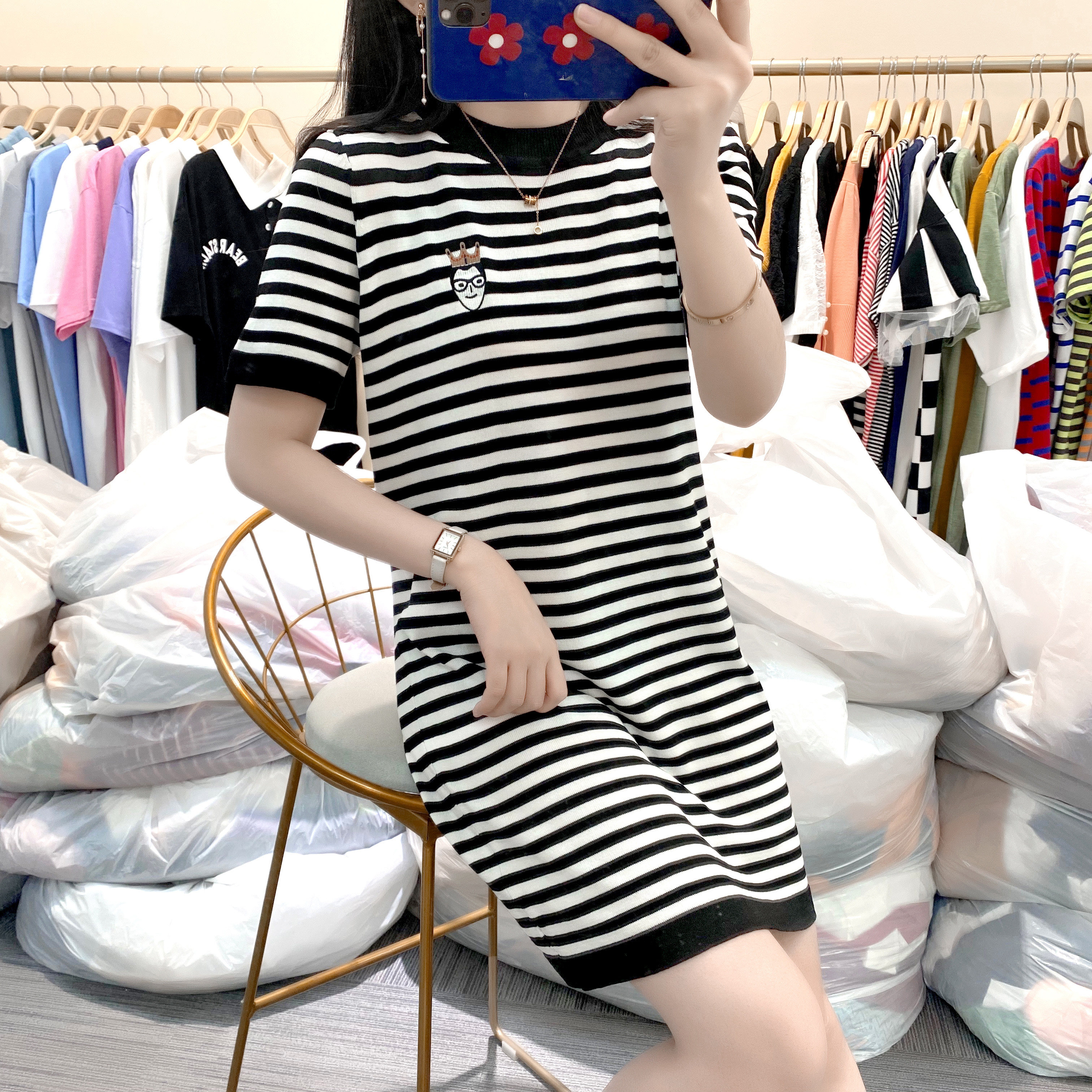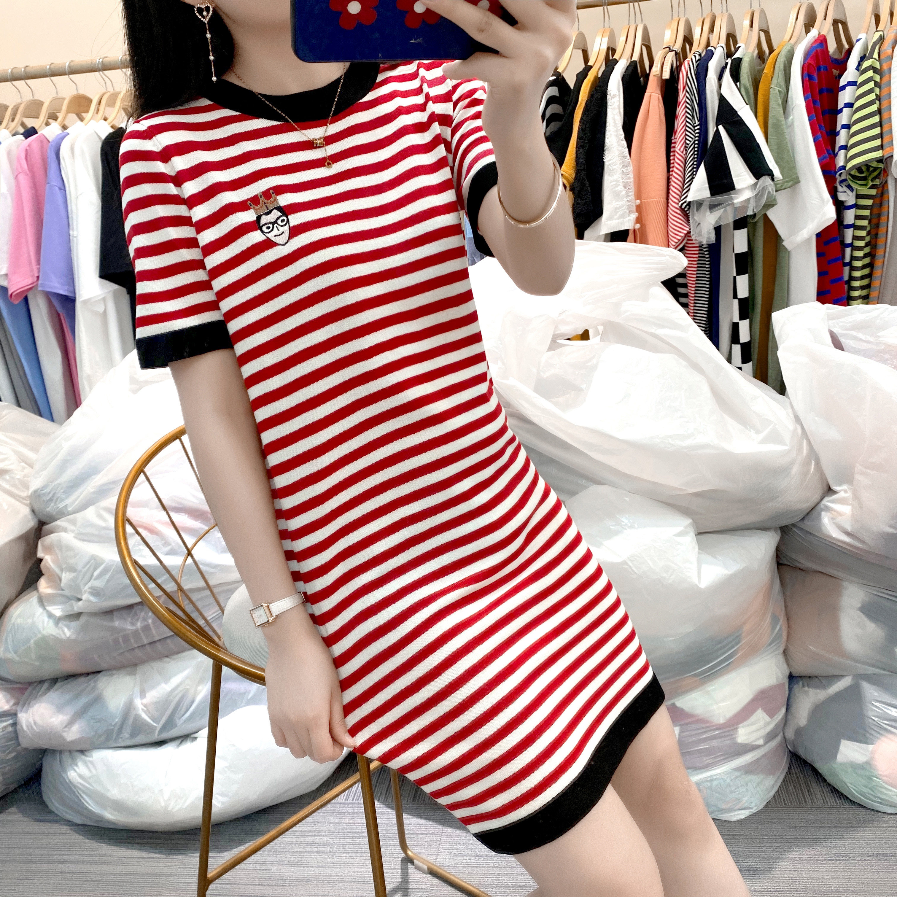 Летний модный длинный базовый трикотажный свитер, платье, европейский стиль, оверсайз, средней длины, короткий рукав