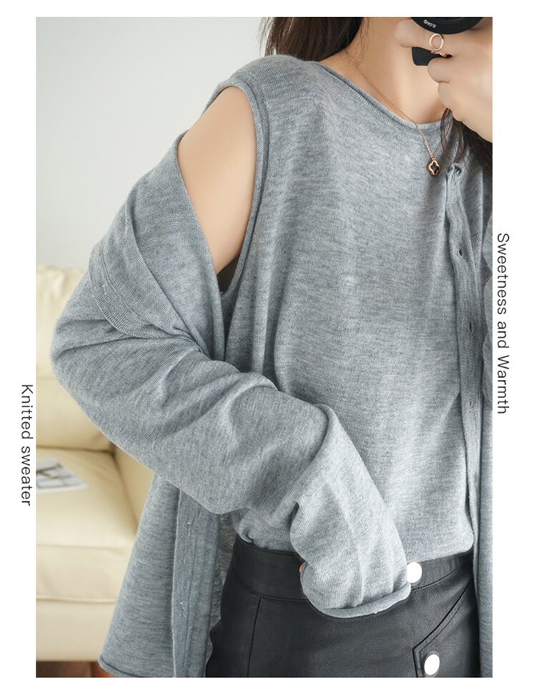 Осенний шерстяной кардиган, трикотажная куртка, короткий свитер, жилет, комплект, 2020, свободный крой