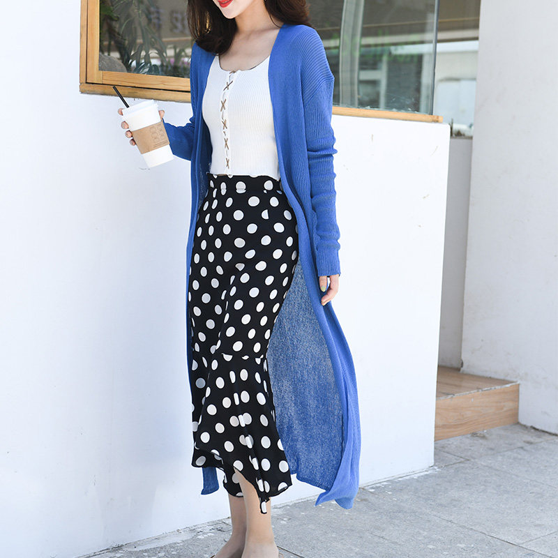 Летняя трикотажная тонкая куртка, длинный кардиган, одежда для защиты от солнца, шелковый лонгслив, свободный крой