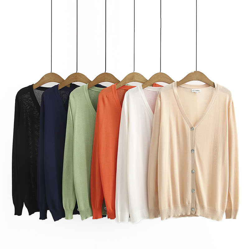 Кардиган, тонкая куртка, базовый лонгслив, одежда для защиты от солнца, большой размер, V-образный вырез