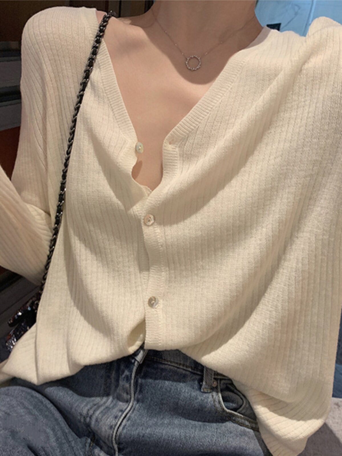 Весенний лонгслив, кардиган, тонкий трикотажный свитер, свободный крой, 2025 года