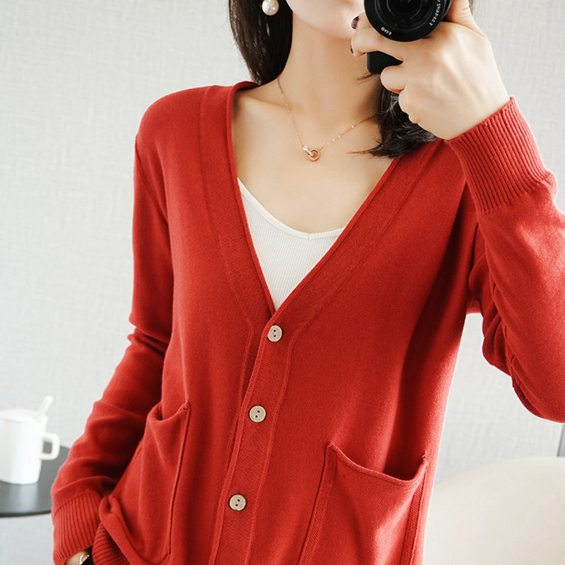 Весенний осенний хлопковый лонгслив, тонкий кардиган, свитер, куртка, 2021 года, оверсайз, V-образный вырез, в корейском стиле