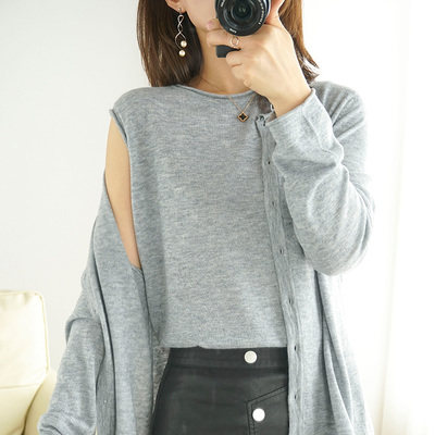 Осенний кашемировый комплект, накидка, кардиган, однотонный топ с чашечками, майка, трикотажный свитер, футболка