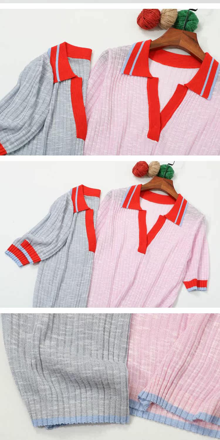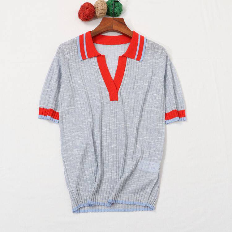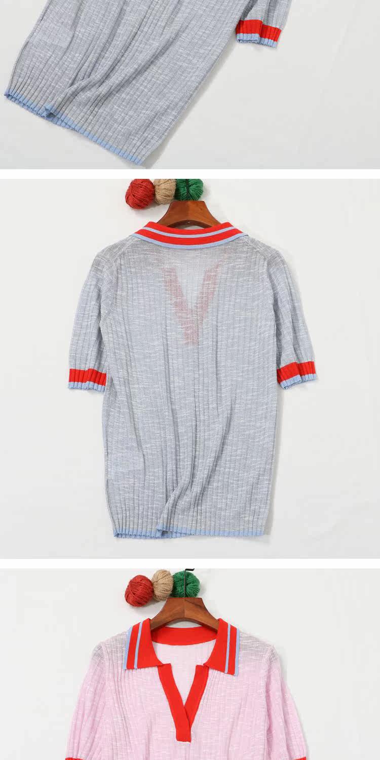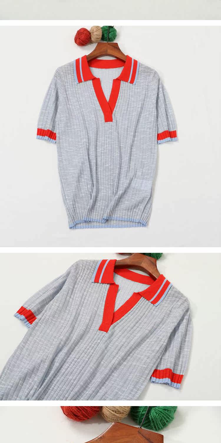 Воротник POOL на европейском вокзале полон темперамента ~ вы можете носить его по своему усмотрению, трикотажный женский вязаный топ с короткими рукавами и небольшими лацканами, демонстрирующий лицо.