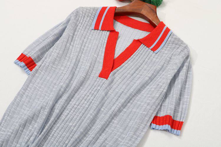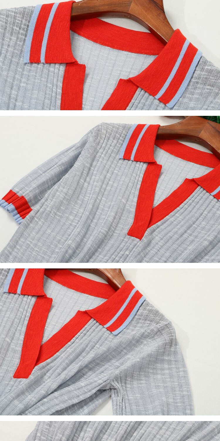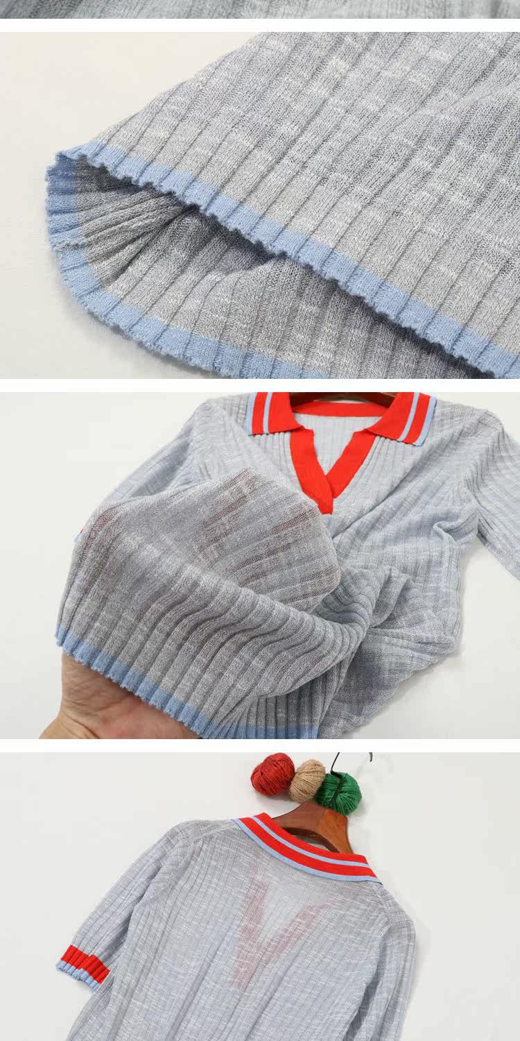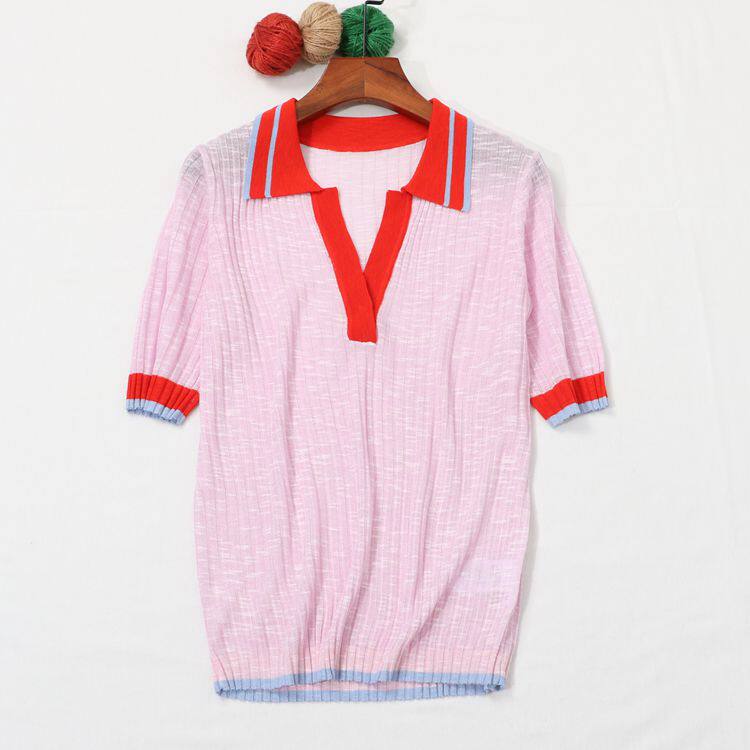 Воротник POOL на европейском вокзале полон темперамента ~ вы можете носить его по своему усмотрению, трикотажный женский вязаный топ с короткими рукавами и небольшими лацканами, демонстрирующий лицо.