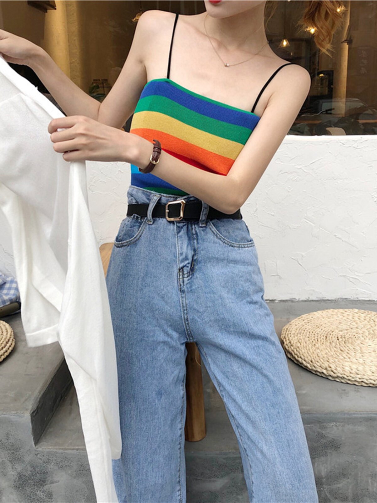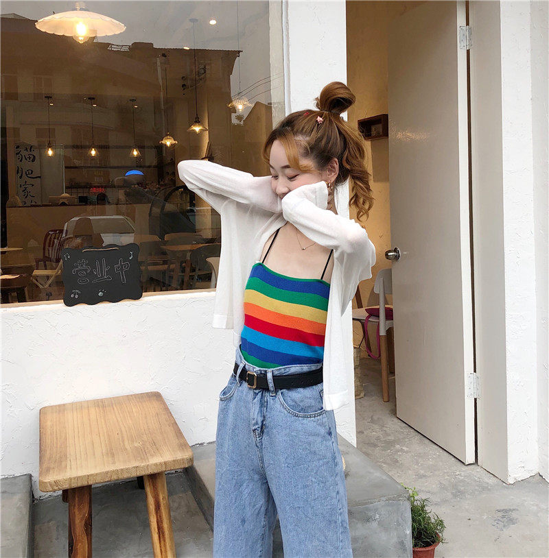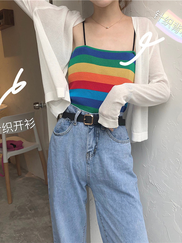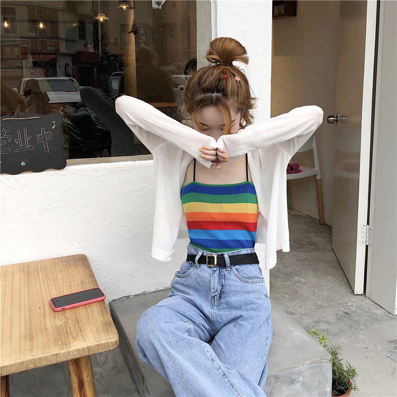 Летний шелковый лонгслив, тонкий трикотажный короткий кардиган, защита от солнца, с лямками, оверсайз