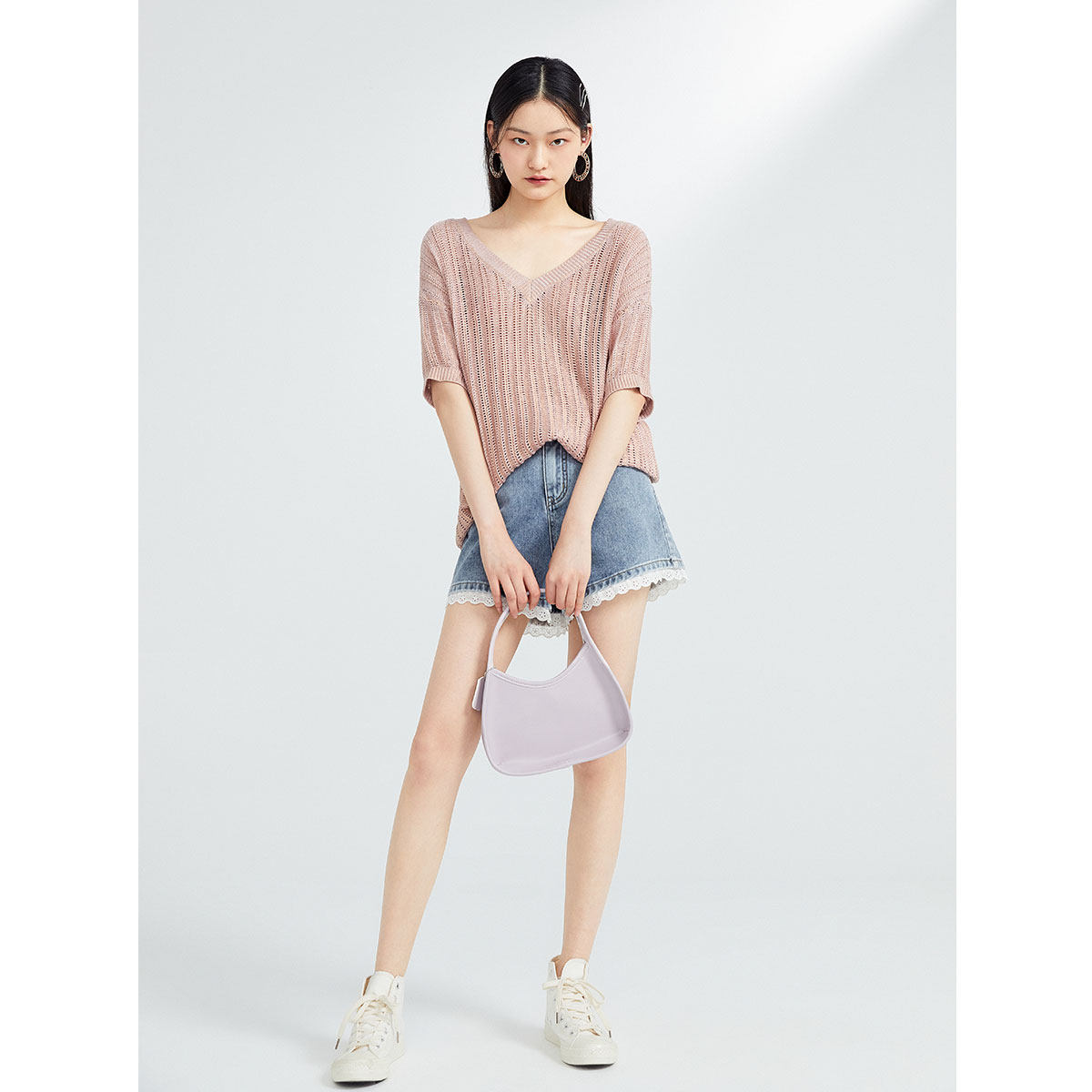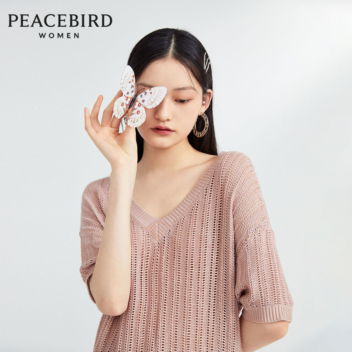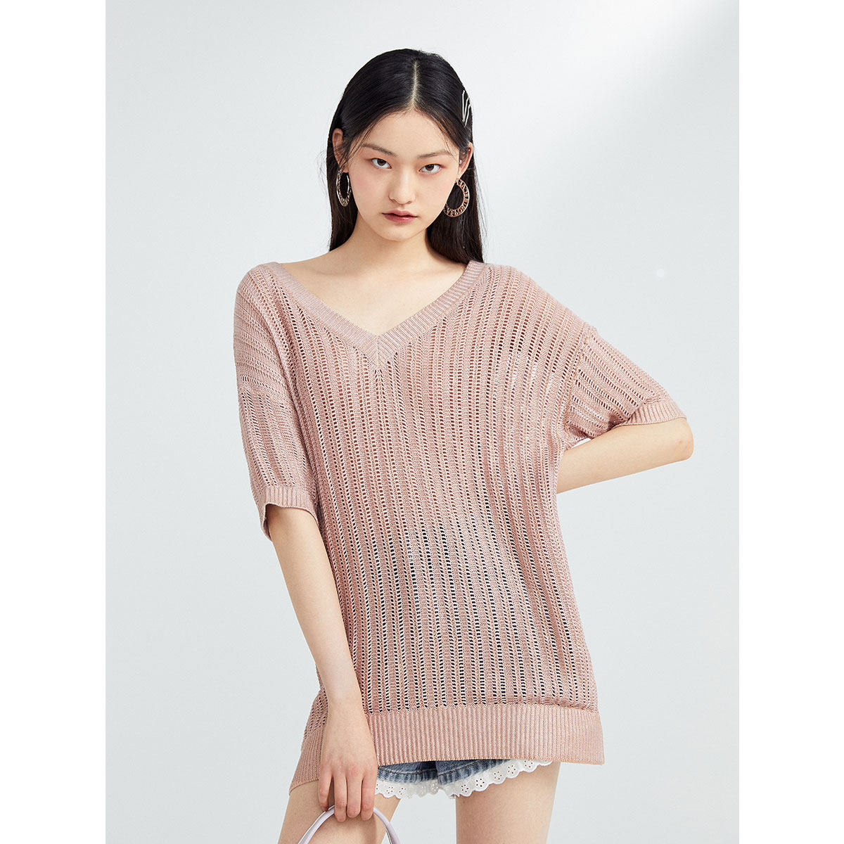 Модный летний розовый трикотажный свитер, V-образный вырез, 2020
