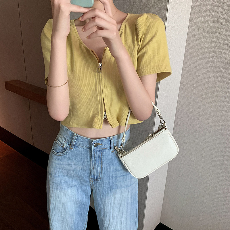 Кардиган, летняя тонкая летняя одежда, трикотажный короткий свитер, 2020, в корейском стиле