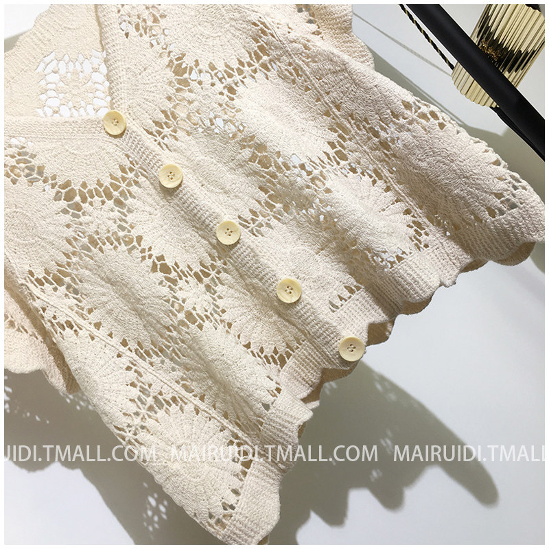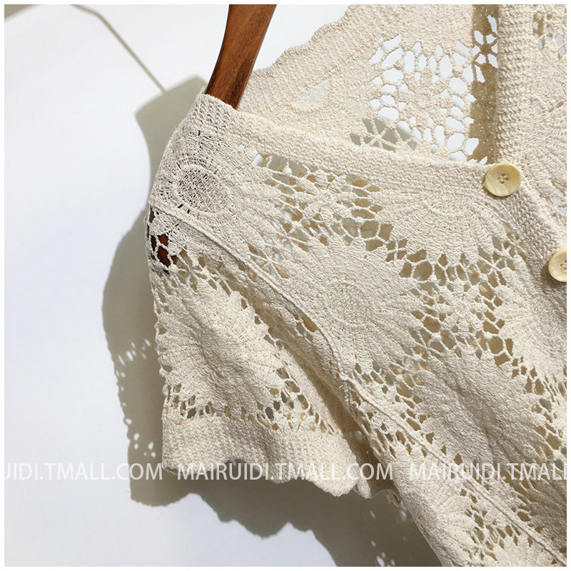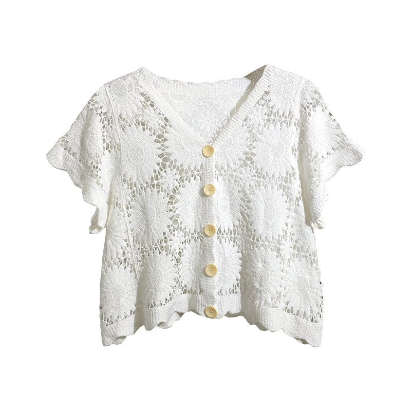 Кардиган, короткая летняя одежда, короткий рукав, в корейском стиле, оверсайз, V-образный вырез, в западном стиле, защита от солнца