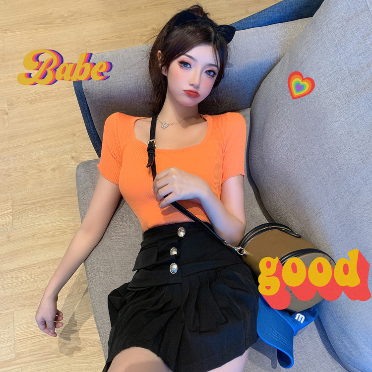 Трикотажный весенний летний сексуальный короткий свитер, 2021 года, квадратный вырез, короткий рукав