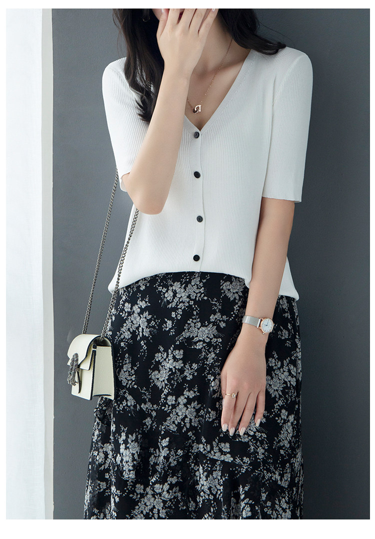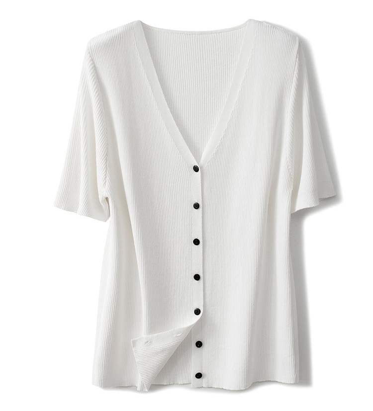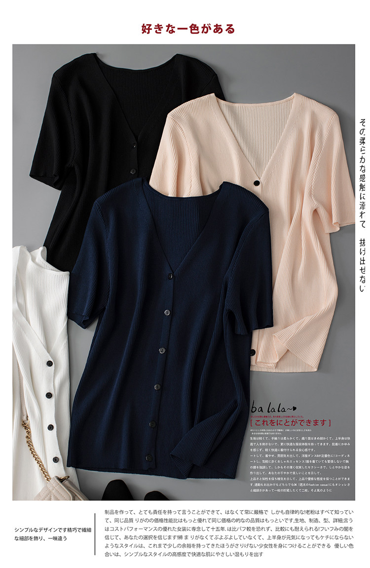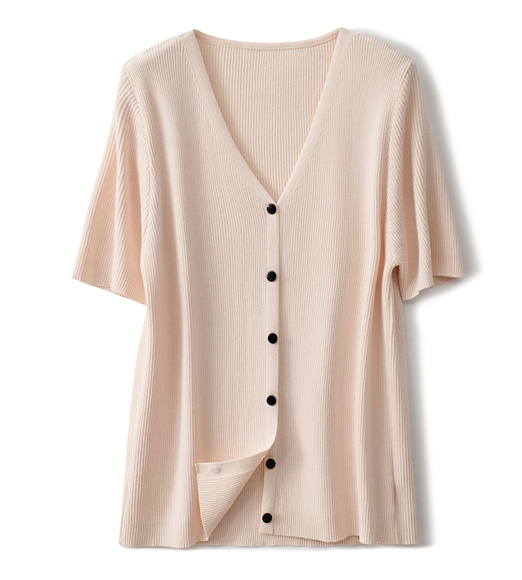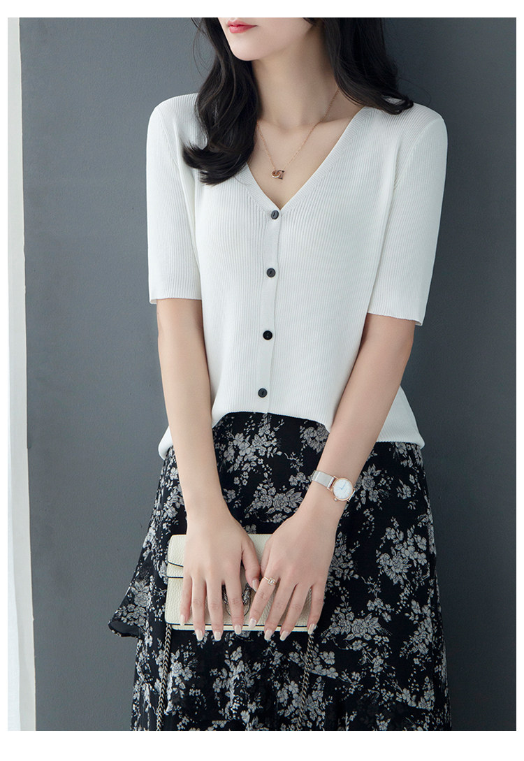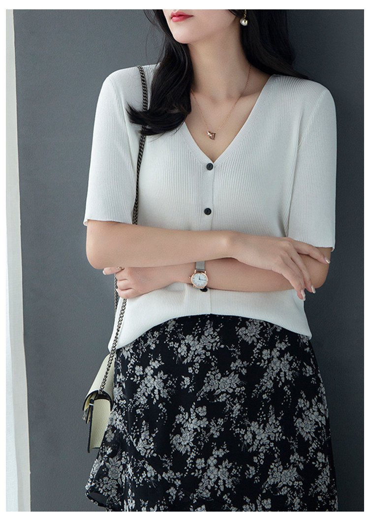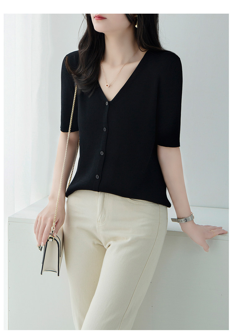Трикотажный летний свитер, однотонный базовый кардиган, короткий рукав, V-образный вырез, в западном стиле