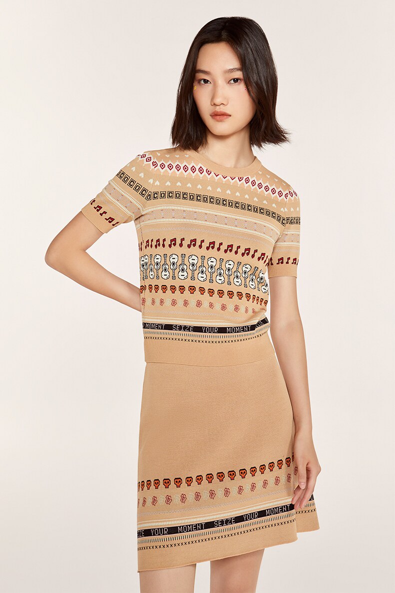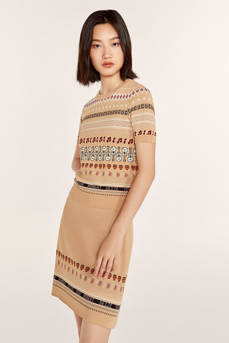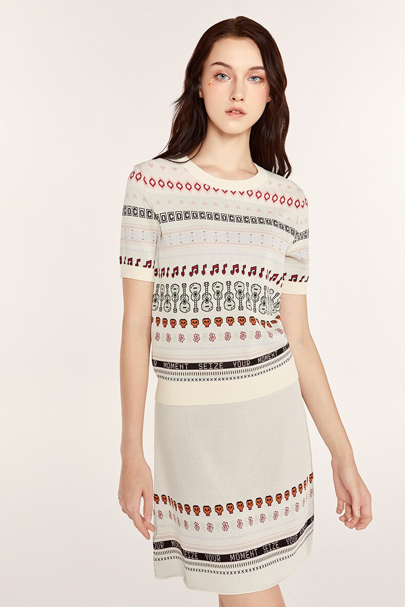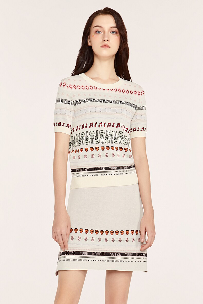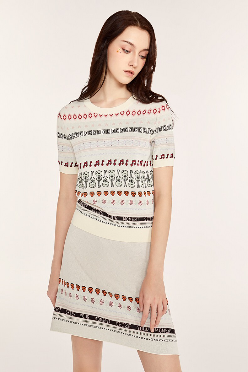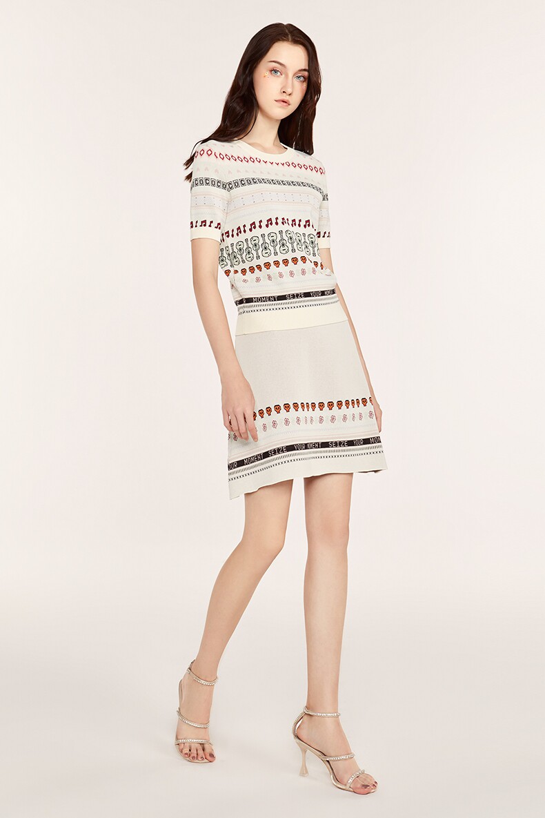 Осенний трикотажный комплект, свитер, юбка, городской стиль, короткий рукав