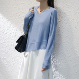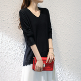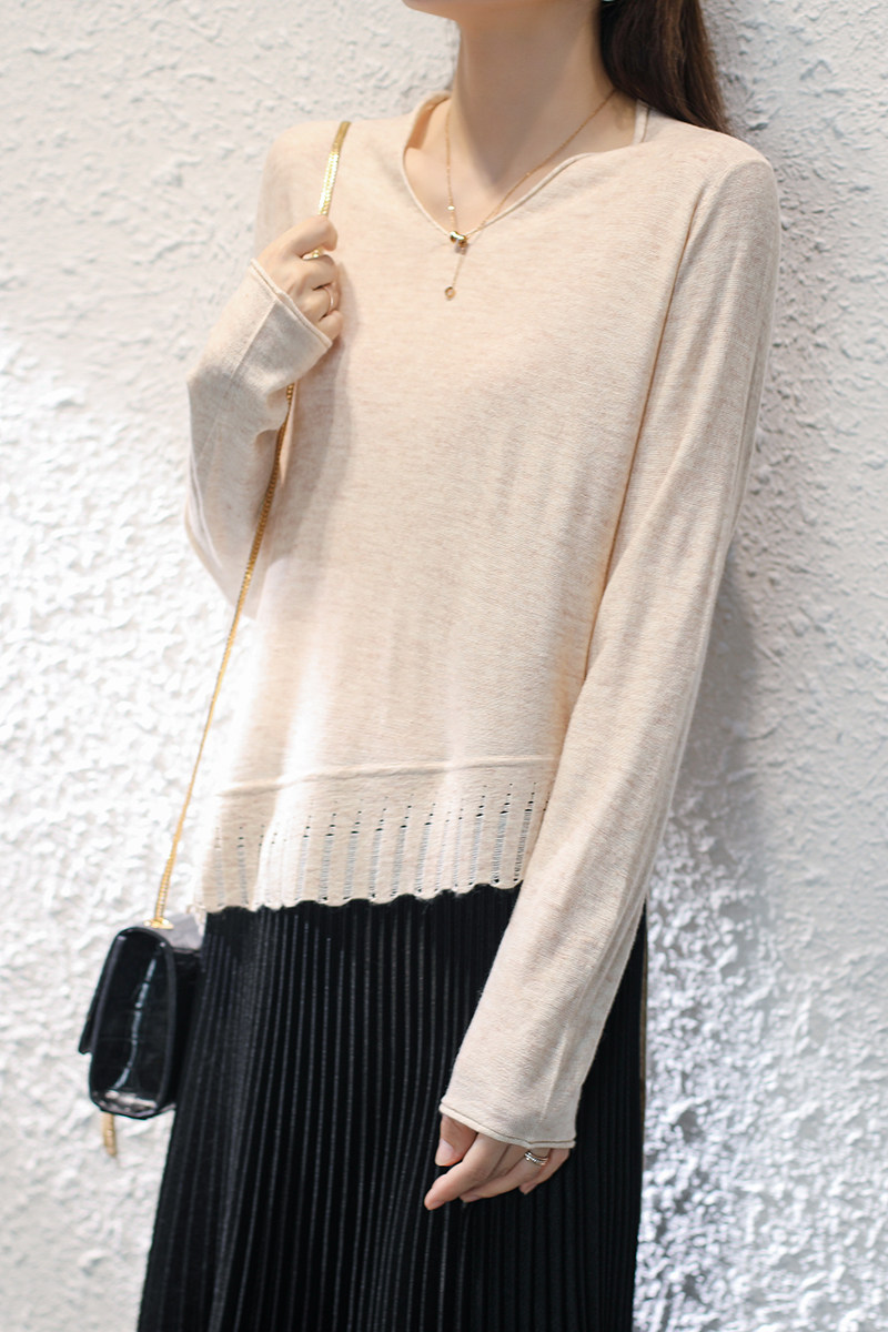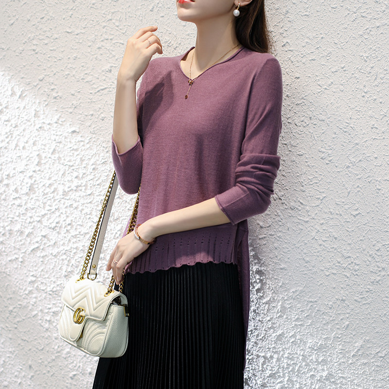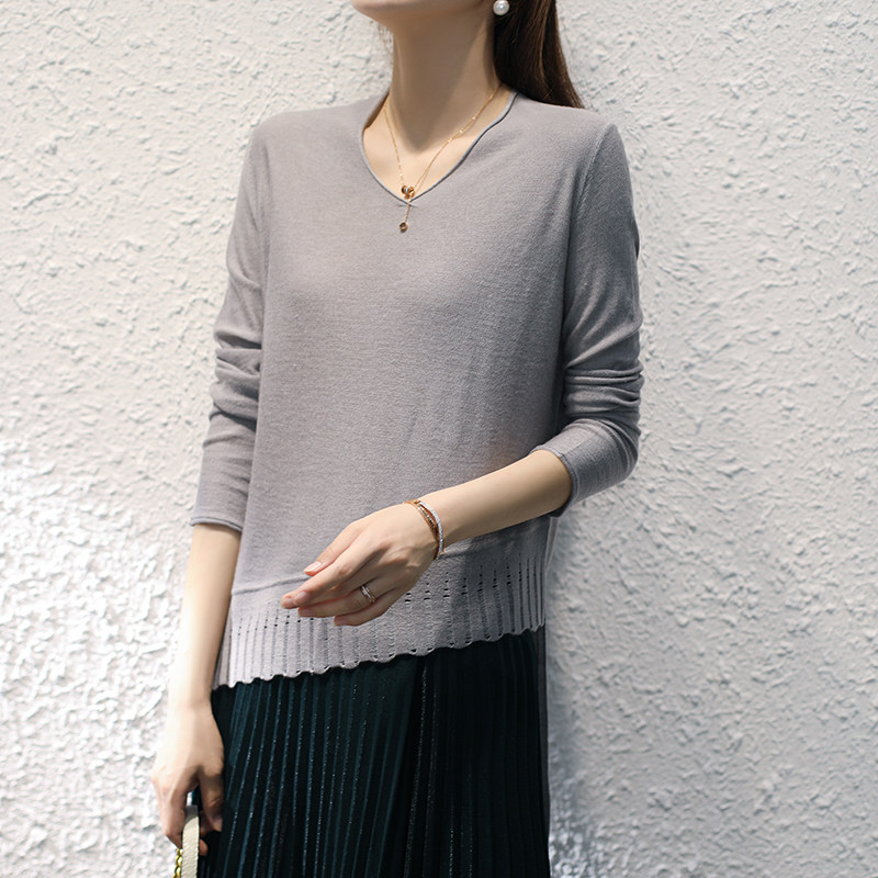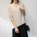 Осенний трикотажный шерстяной свитер, короткий базовый лонгслив, 2020, V-образный вырез