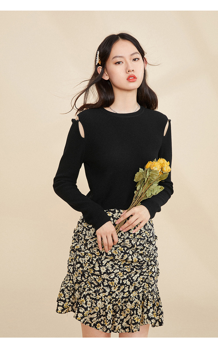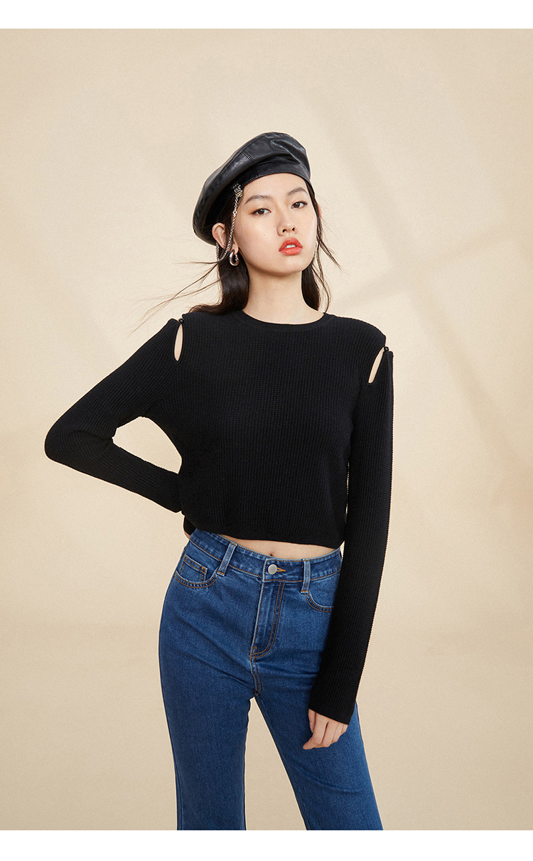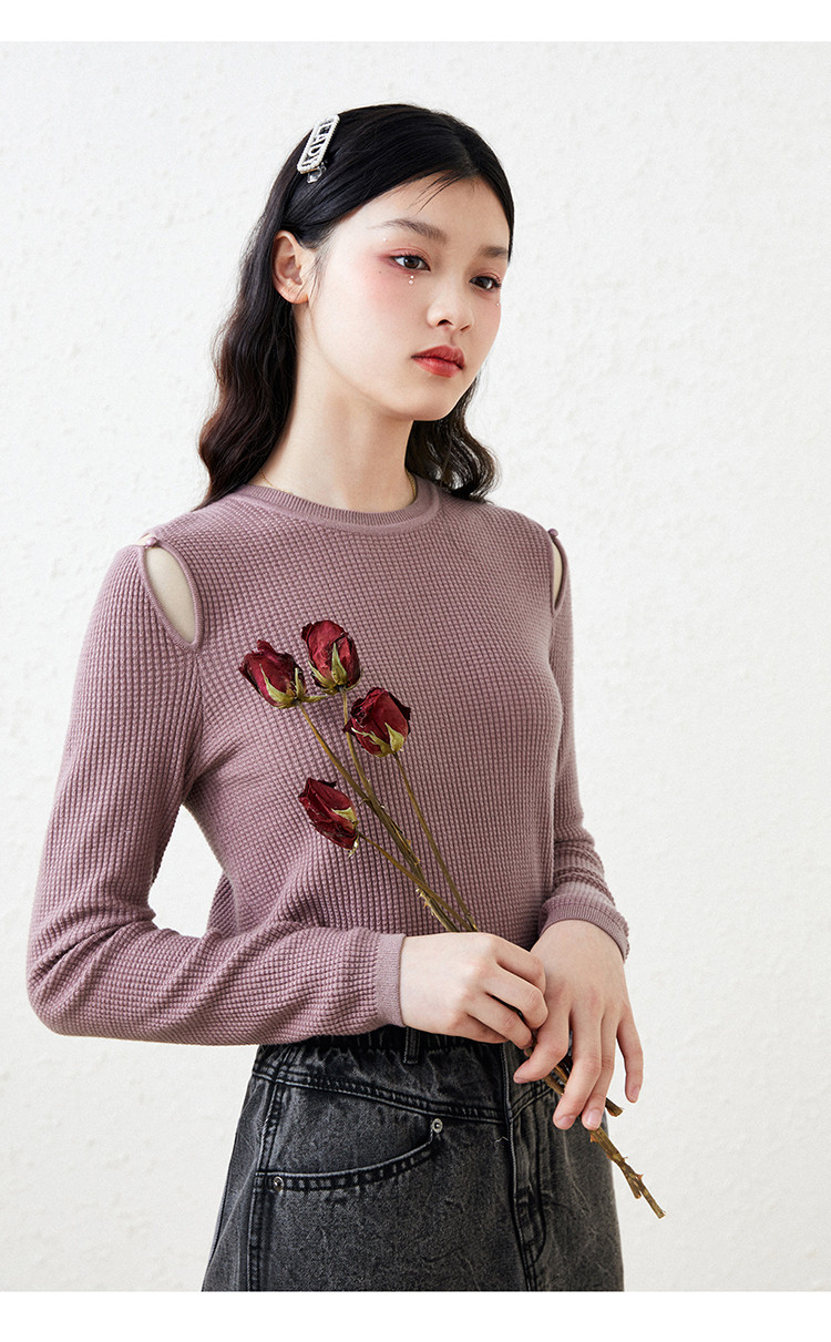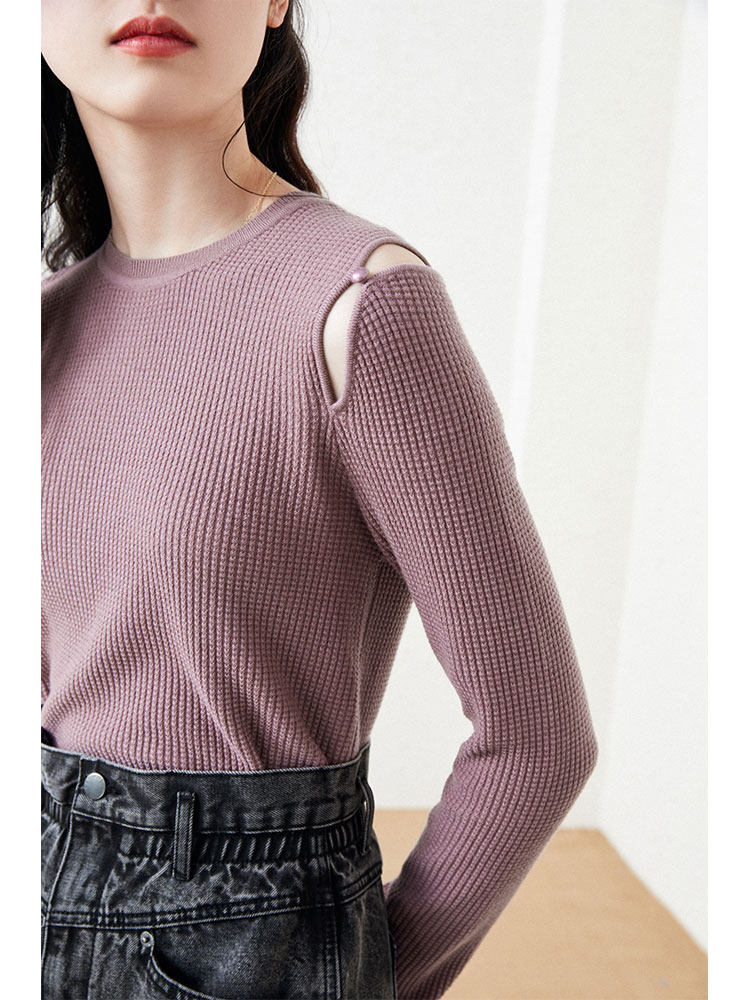 Сиреневый базовый приятный телу осенний черный трикотажный свитер, 2020, облегающий крой