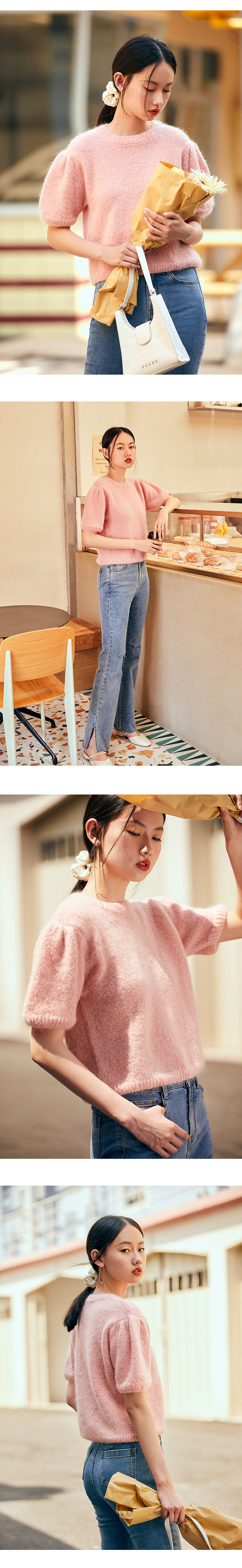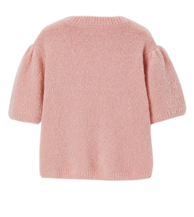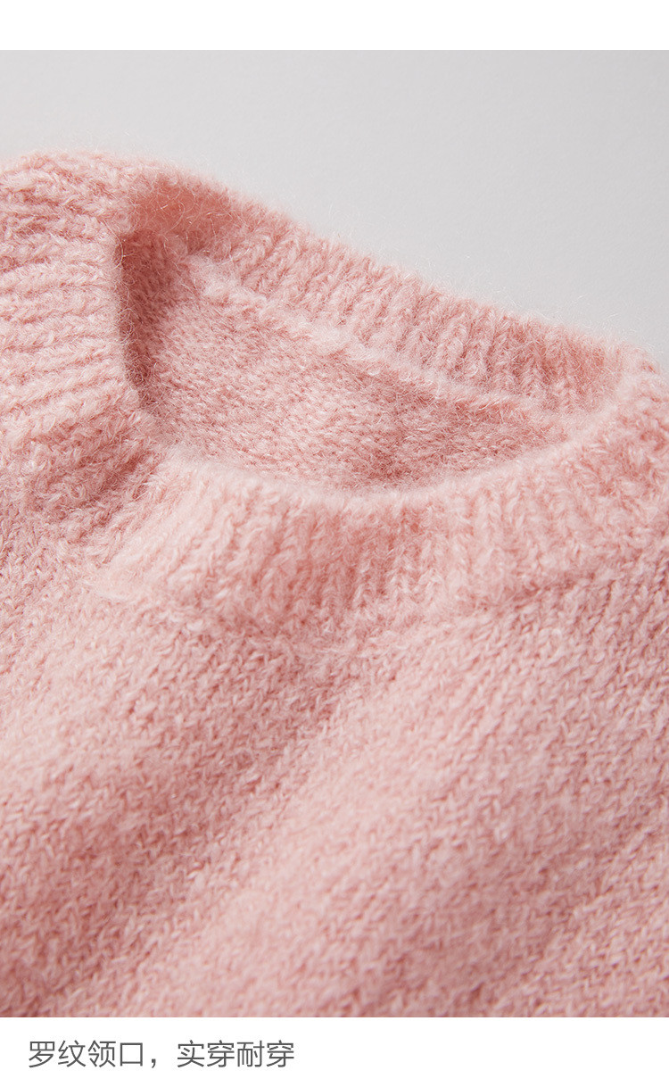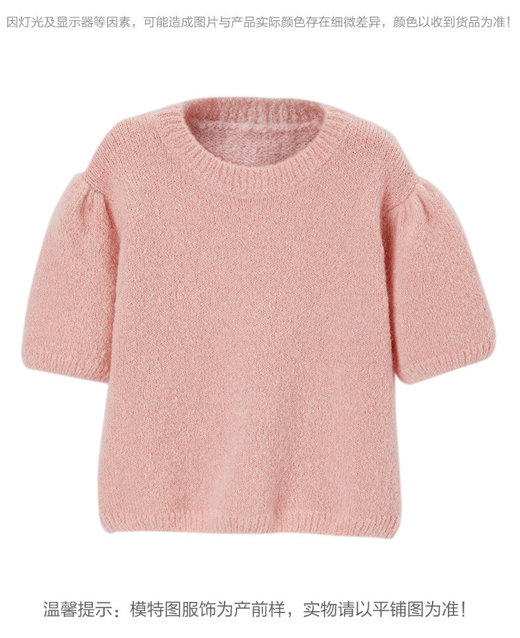 Розовый трикотажный осенний базовый свитер с круглым воротником, рукава фонарики, 2020