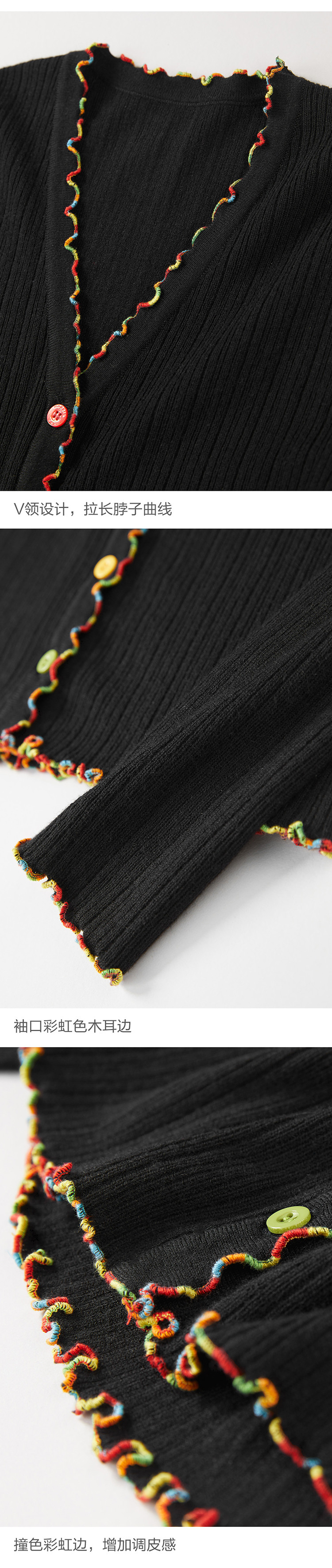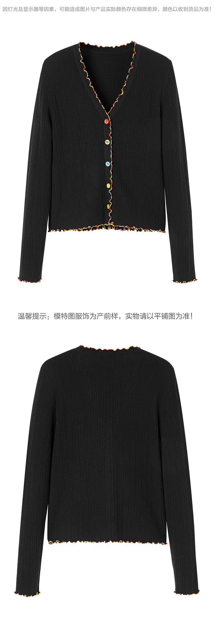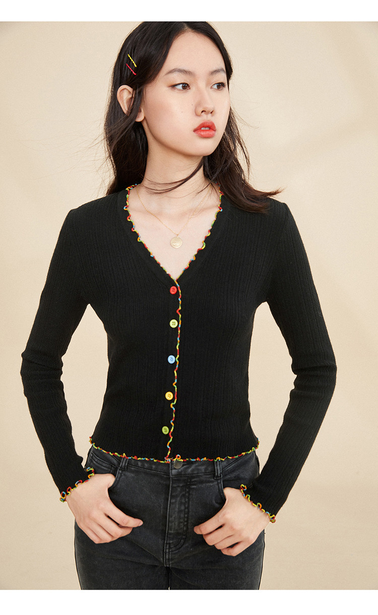 Черный радужный базовый приятный телу осенний трикотажный свитер, кардиган, V-образный вырез, облегающий крой, 2020