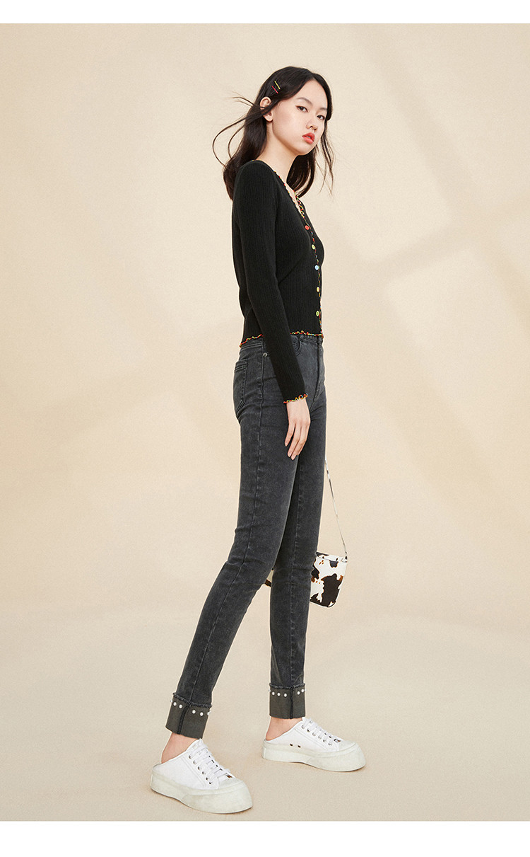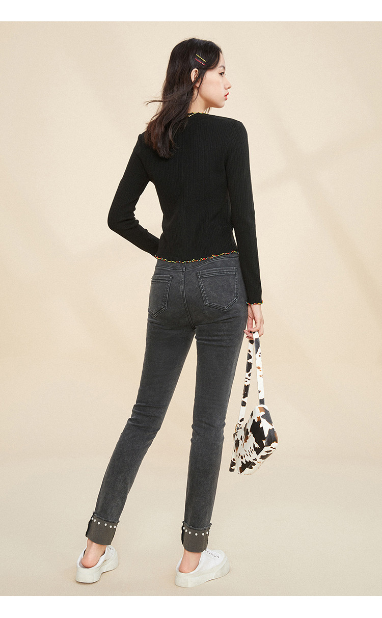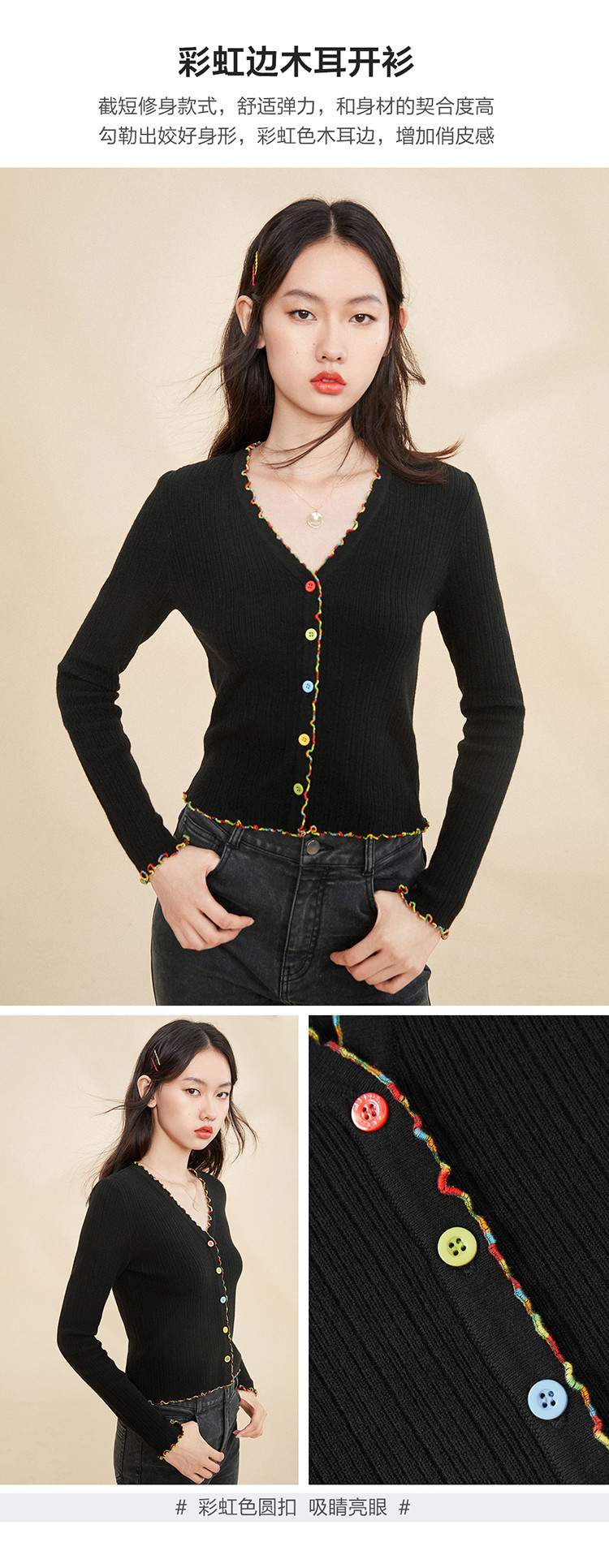 Черный радужный базовый приятный телу осенний трикотажный свитер, кардиган, V-образный вырез, облегающий крой, 2020