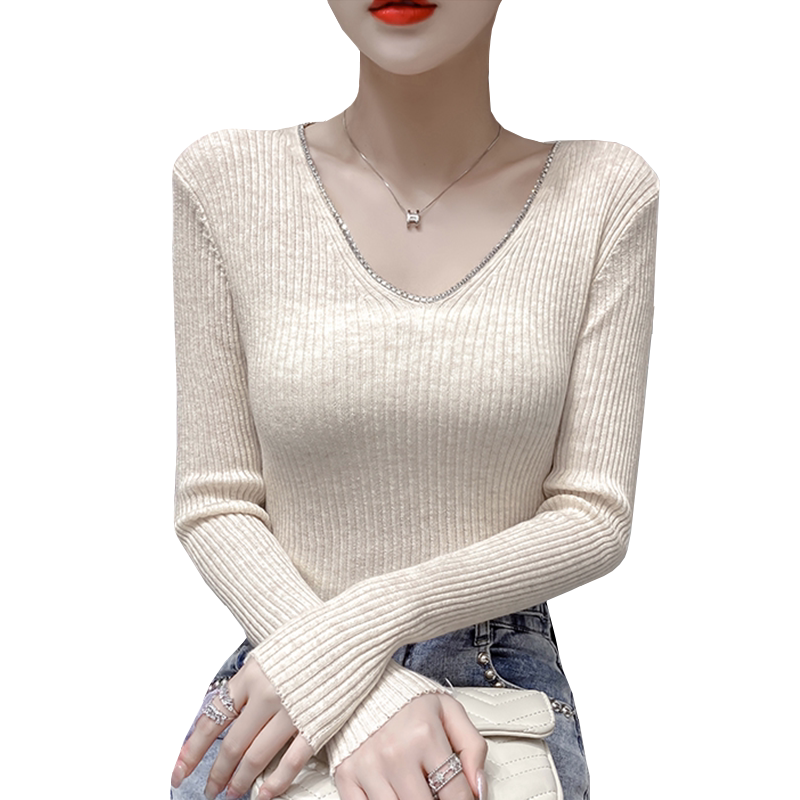 Трикотажный тонкий приталенный свитер, модный базовый лонгслив, коллекция 2021, V-образный вырез