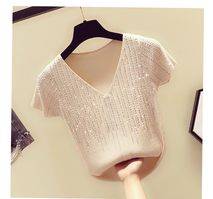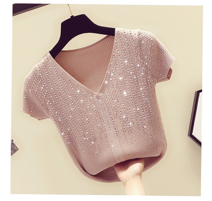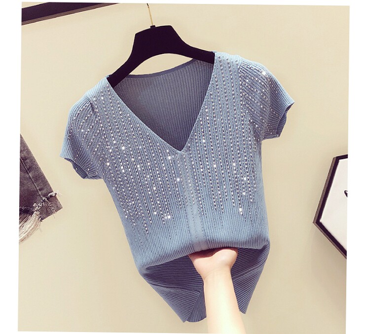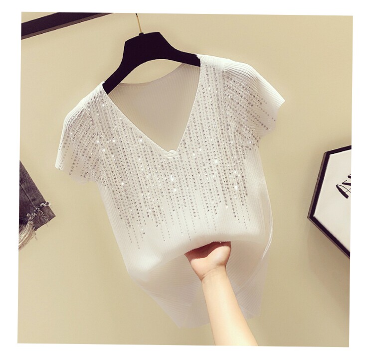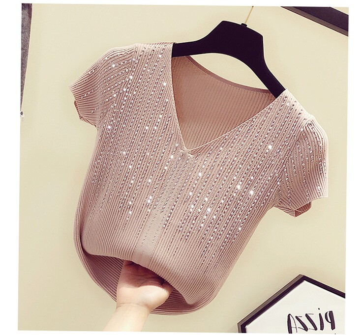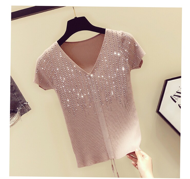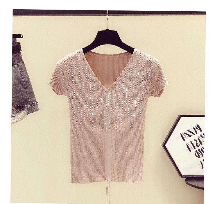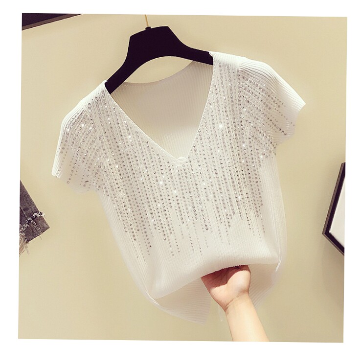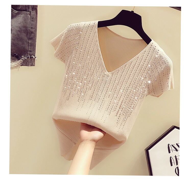 Шелковая тонкая брендовая базовая приятная телу футболка с коротким рукавом, в корейском стиле, V-образный вырез, облегающий крой