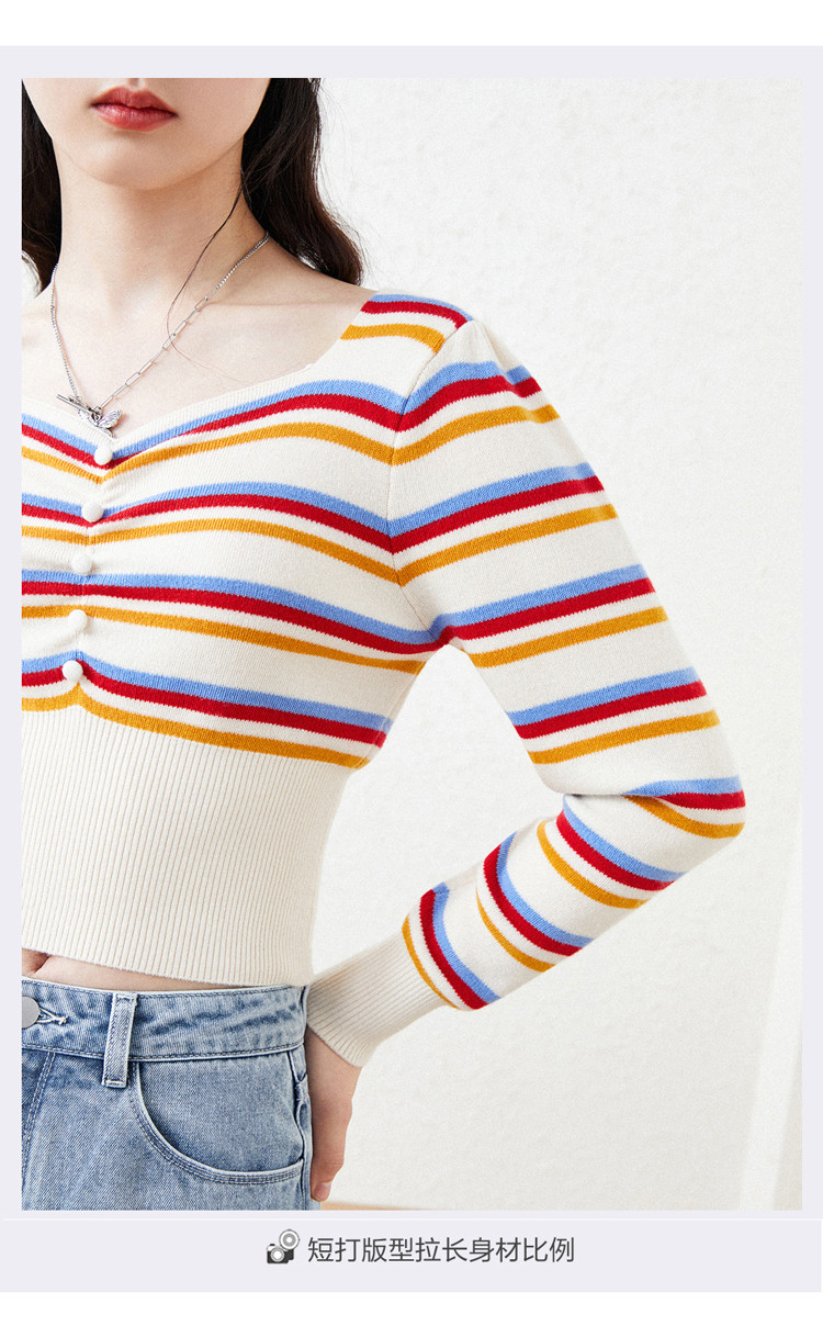 Ретро трикотажный свитер, осенний лонгслив, радужный корсет, квадратный вырез, 2020