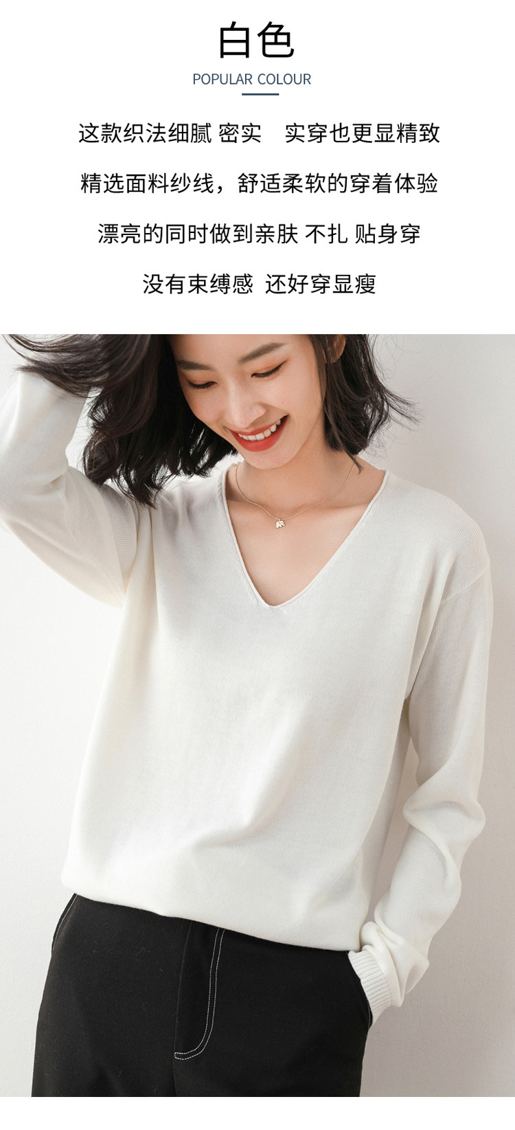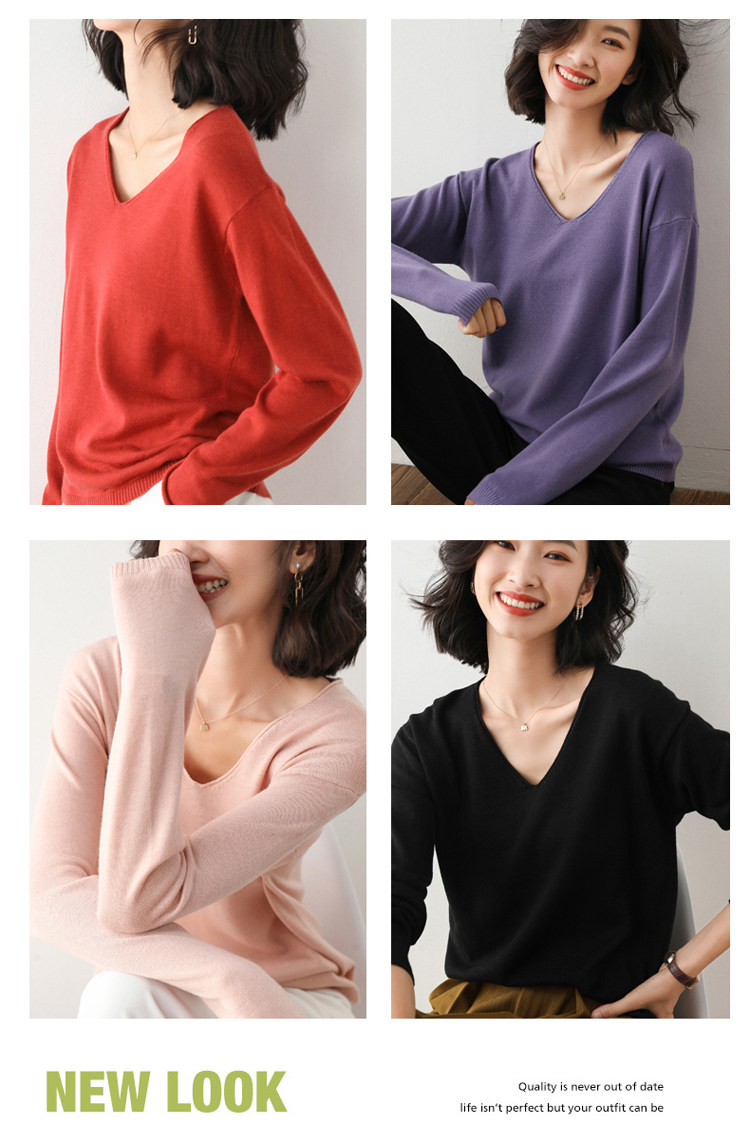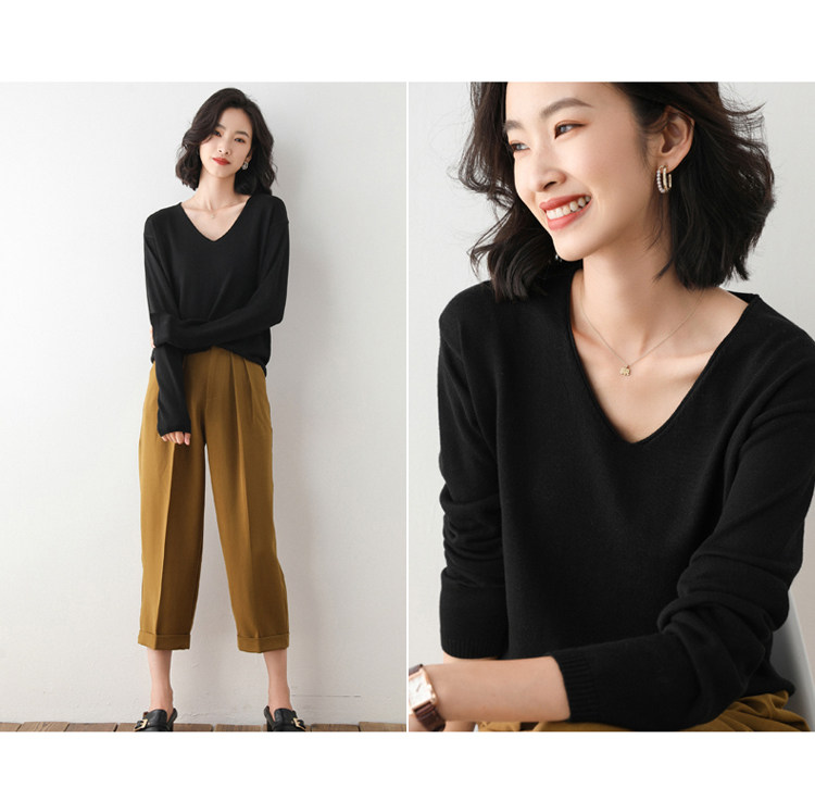 Осенний шерстяной свитер, базовый приятный телу трикотажный лонгслив, свободный крой