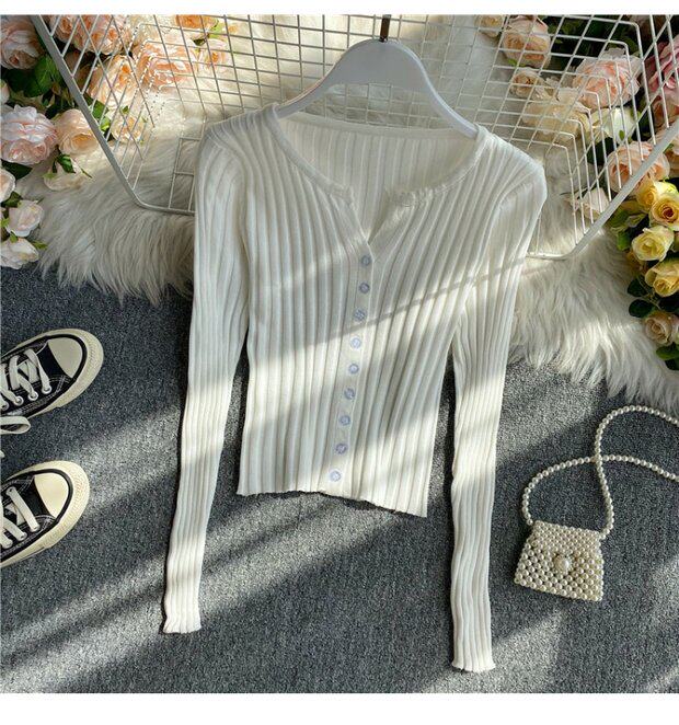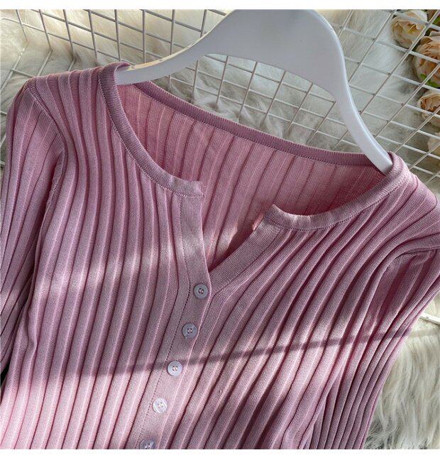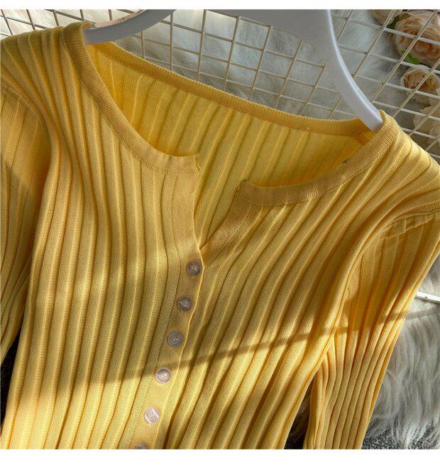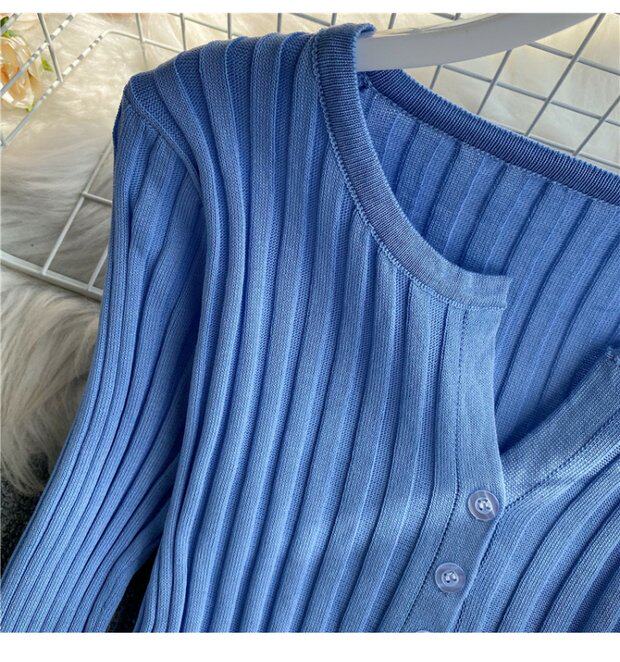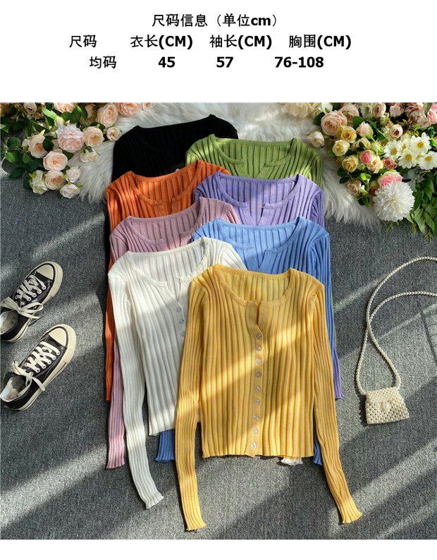 Трикотажный кардиган, осенний однотонный короткий лонгслив, тонкая одежда для защиты от солнца, куртка