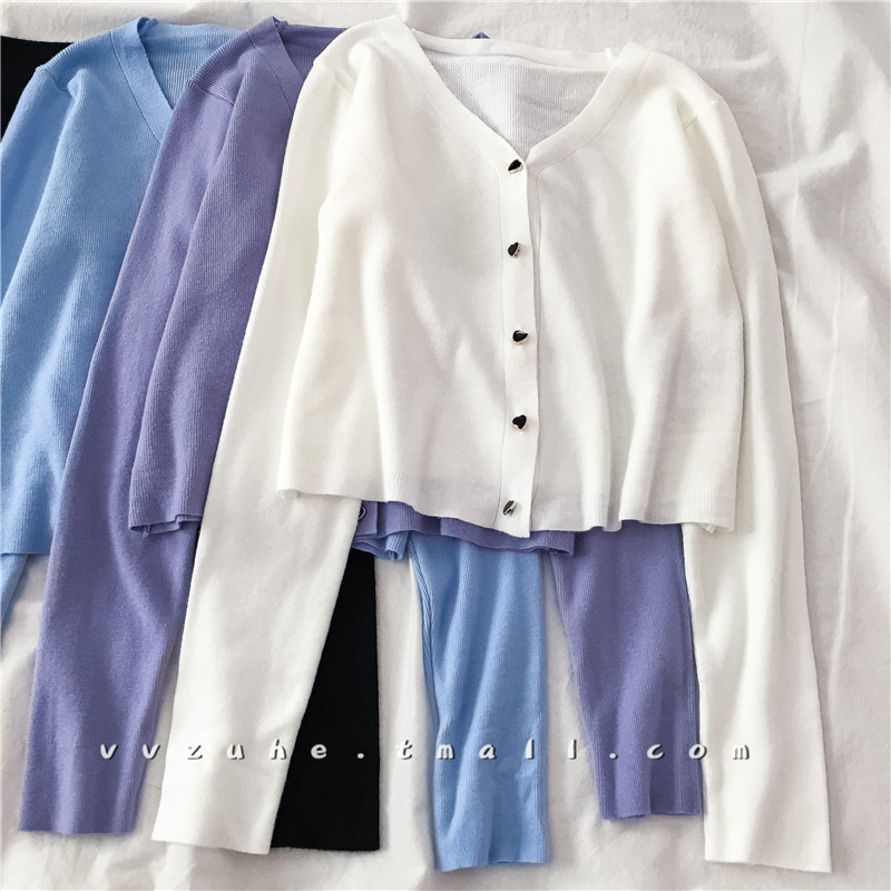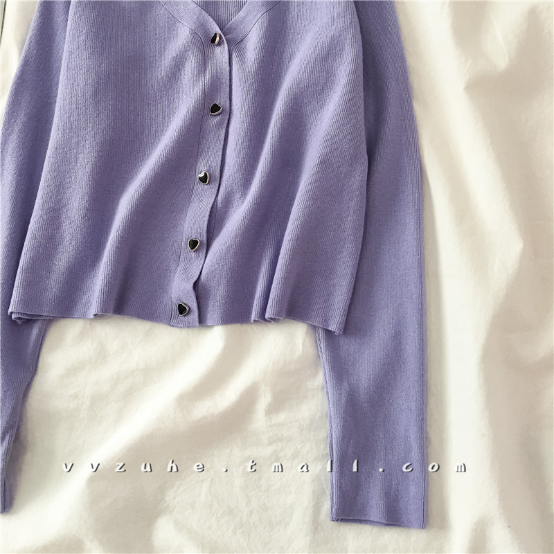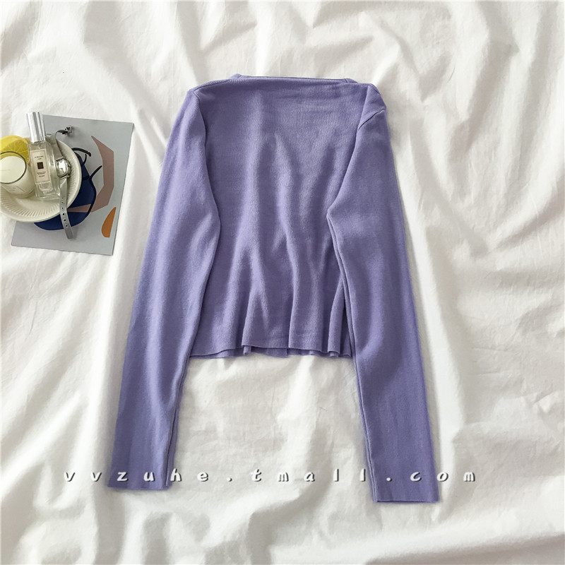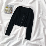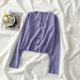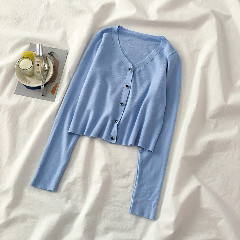 Осенний трикотажный тонкий лонгслив, короткий кардиган, 2020 года, V-образный вырез