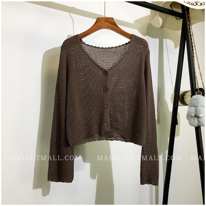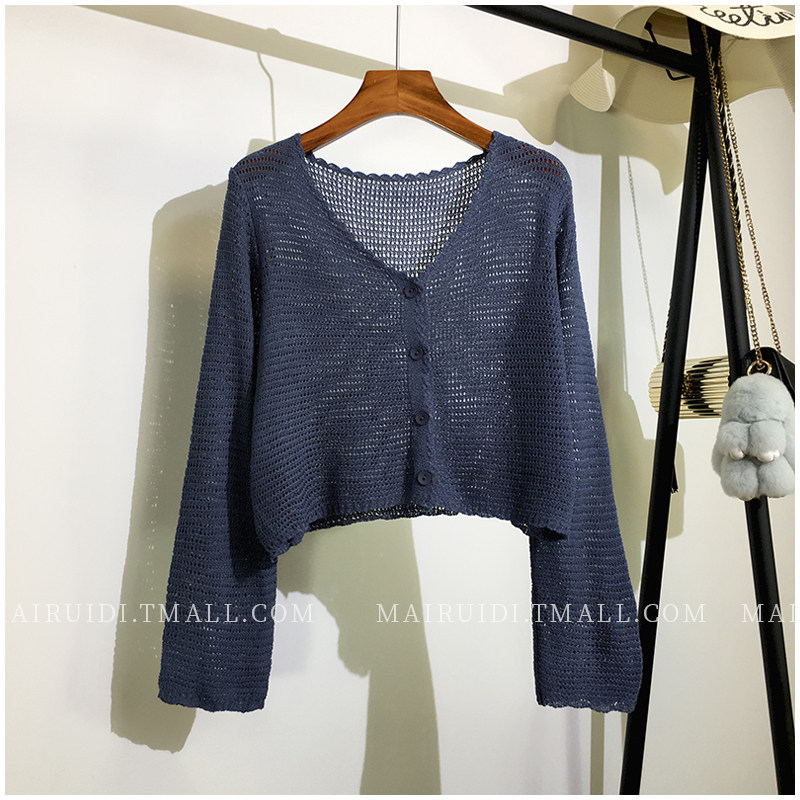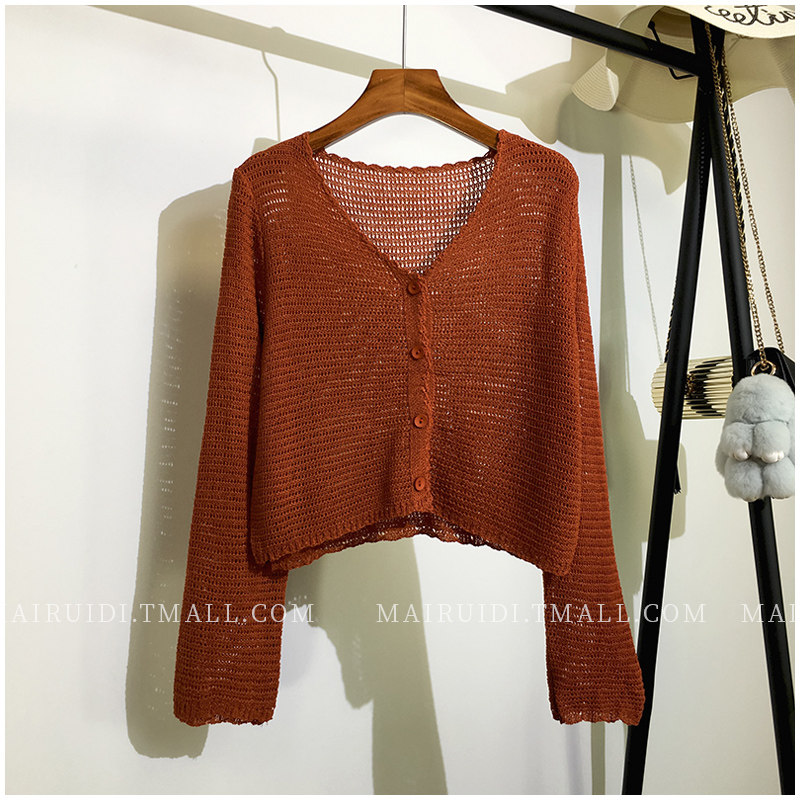 Лонгслив, осенний кардиган, тонкий трикотажный короткий свитер, накидка, в корейском стиле