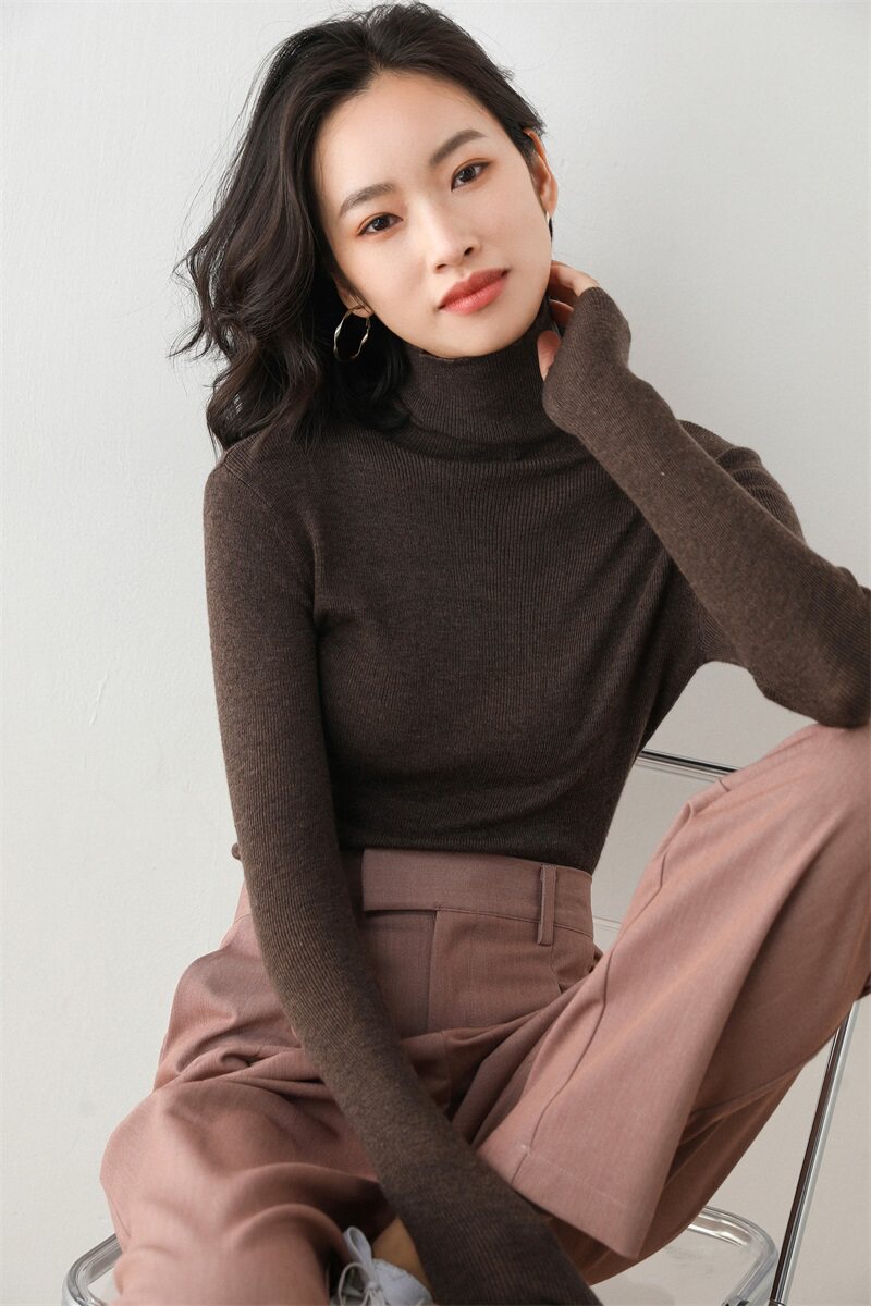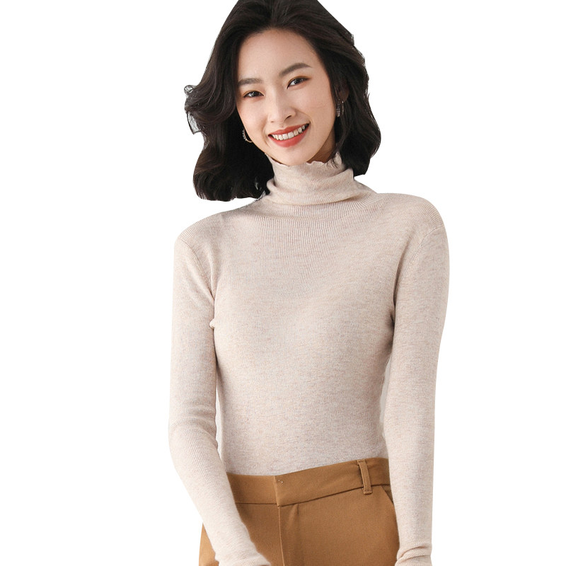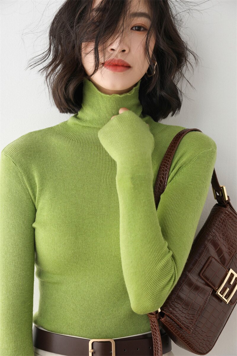 Ультратонкий шерстяной базовый трикотажный демисезонный свитер из искусственного меха, высокий воротник, облегающий крой