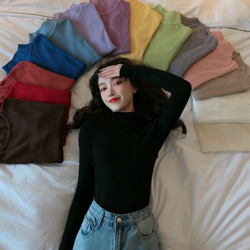 Черный базовый лонгслив, приятный телу демисезонный трикотажный свитер, высокий воротник, облегающий крой