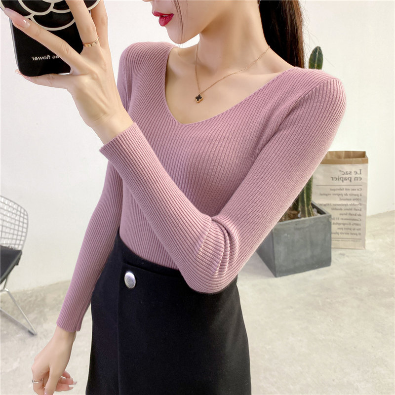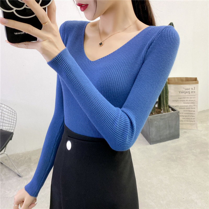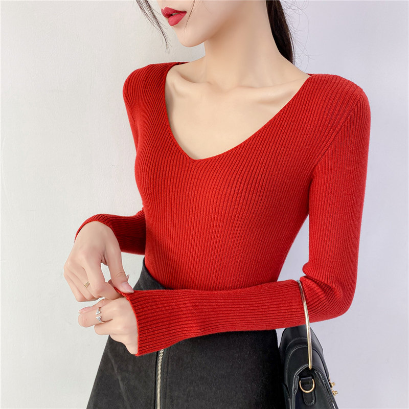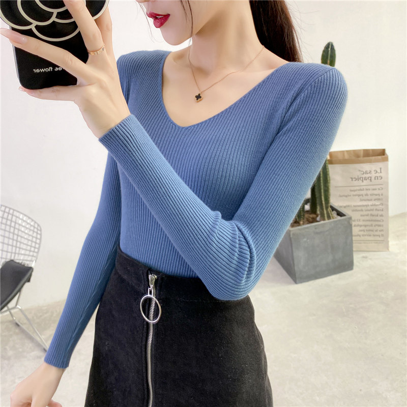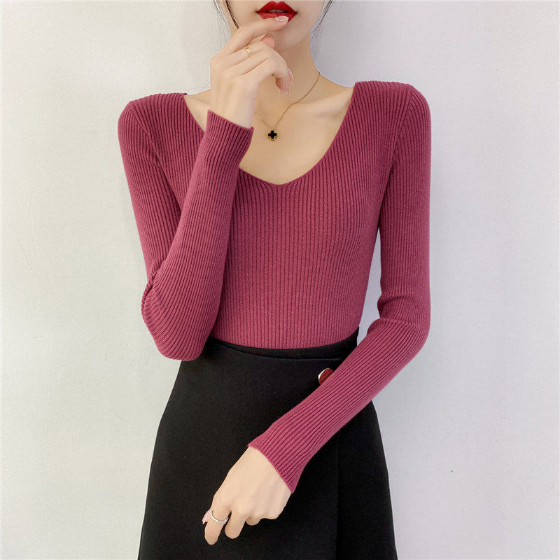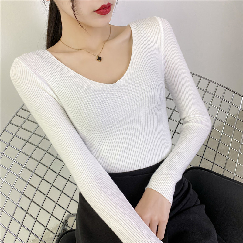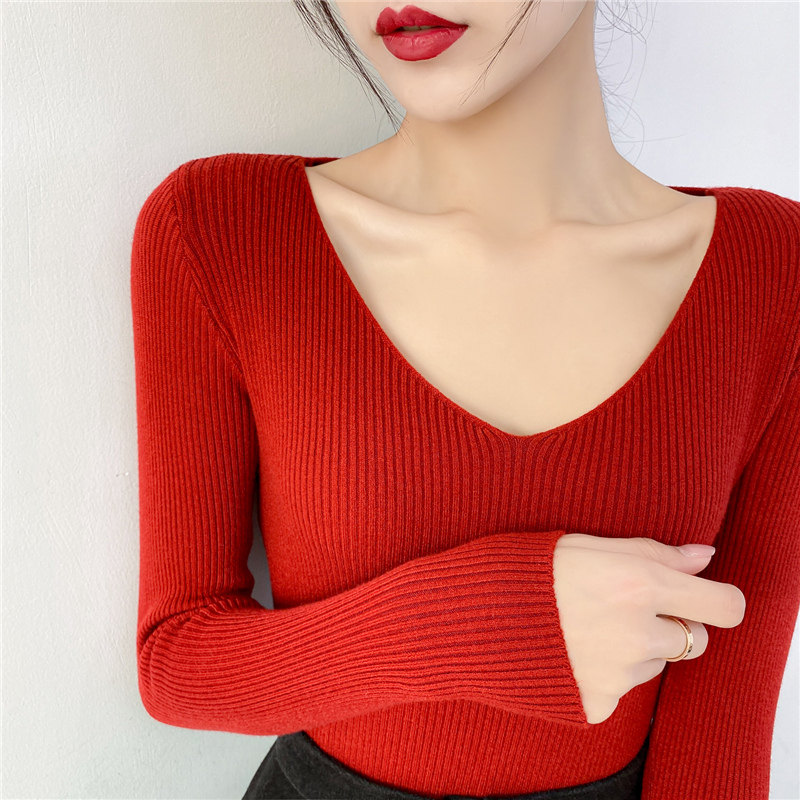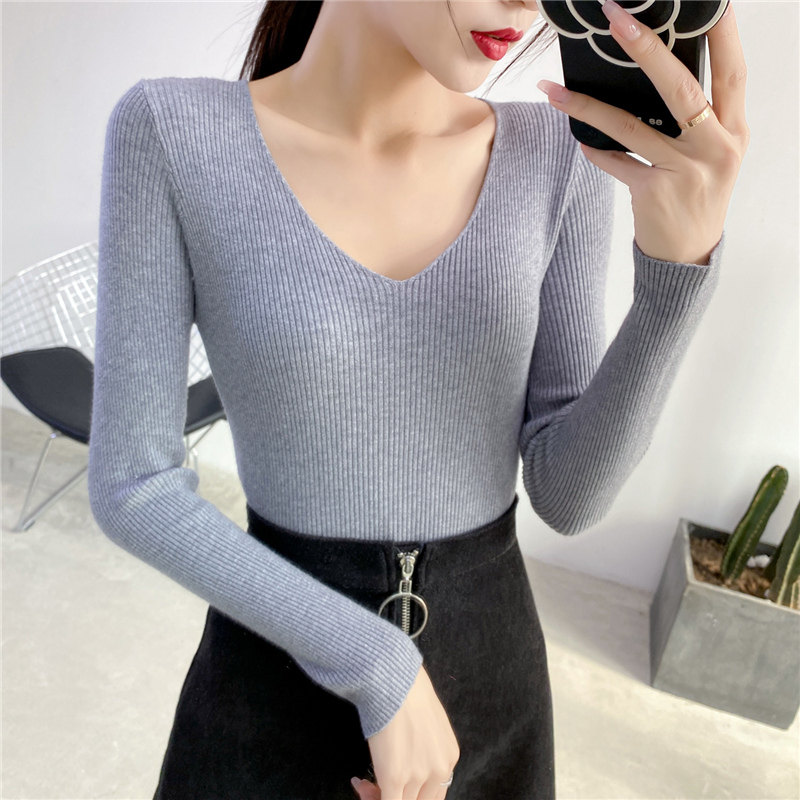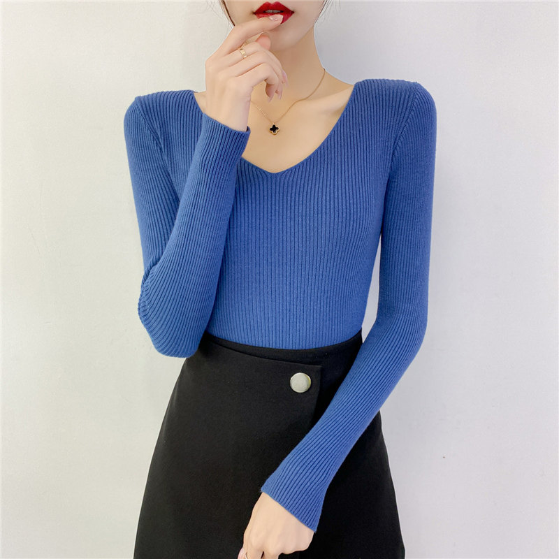 Трикотажный лонгслив, свитер, демисезонное термобелье, V-образный вырез, облегающий крой, в обтяжку