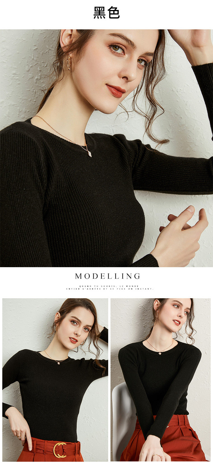 Свитер с круглым воротником, тонкий демисезонный короткий черный трикотажный лонгслив, облегающий крой, в обтяжку, 2020