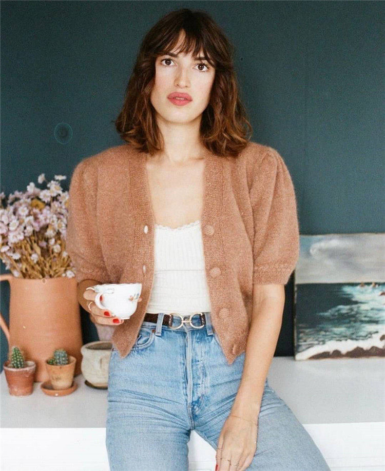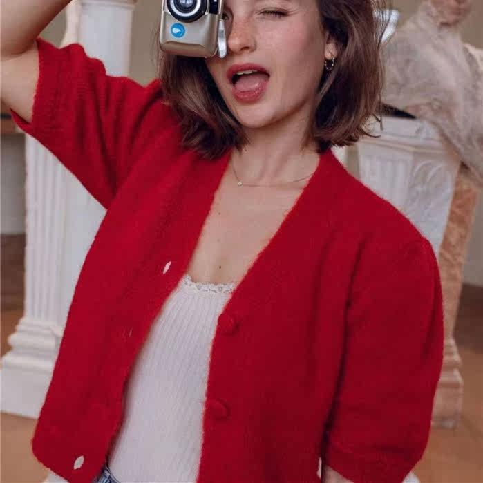 Элегантный трикотажный свитер, рубашка, кардиган, французский стиль, короткий рукав