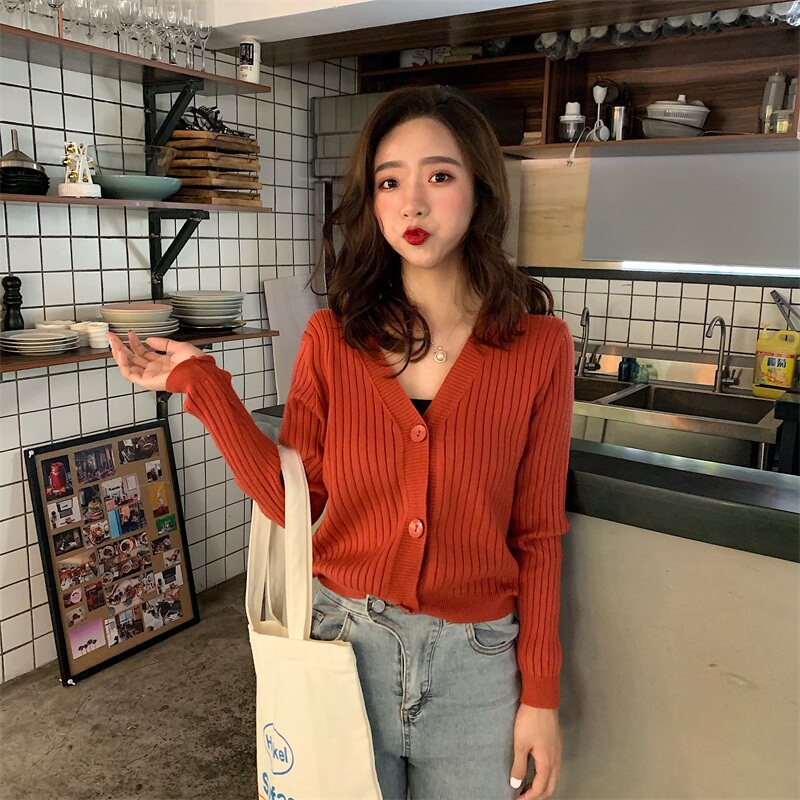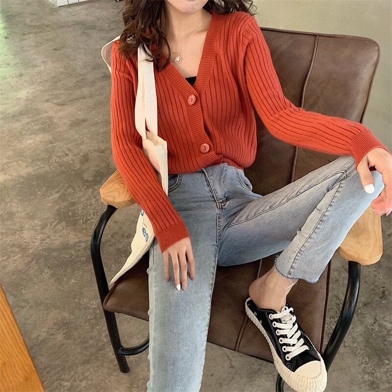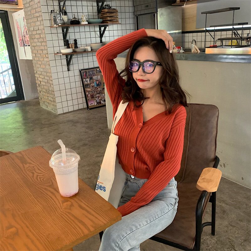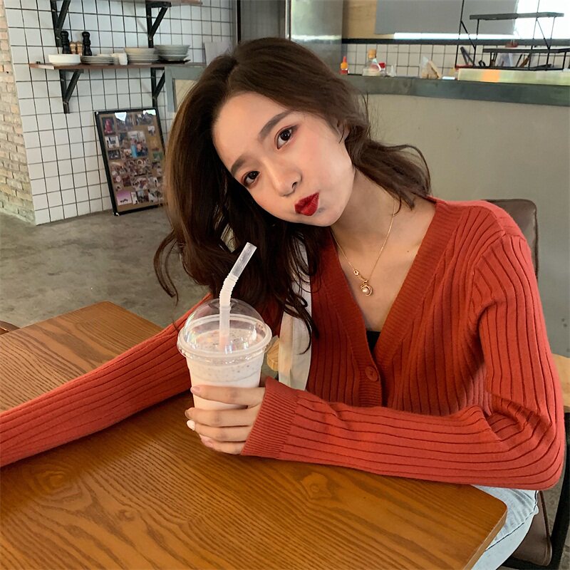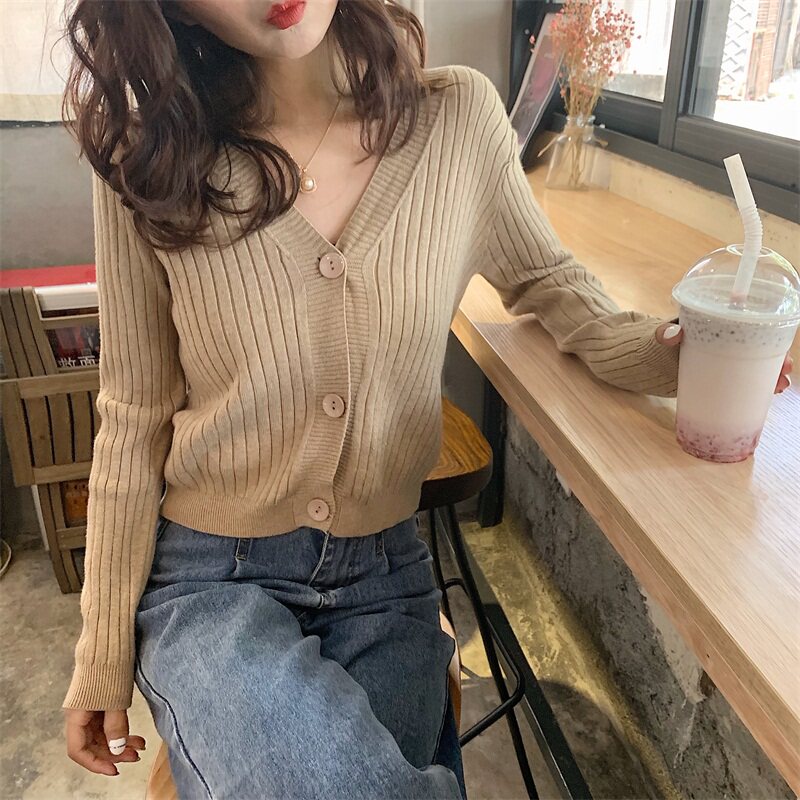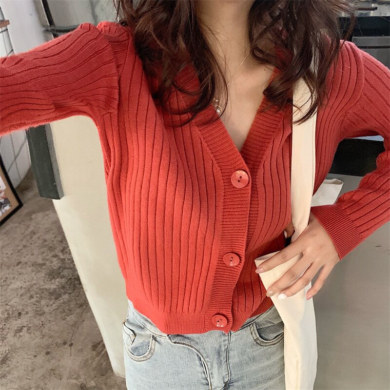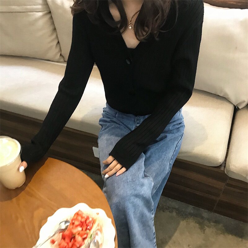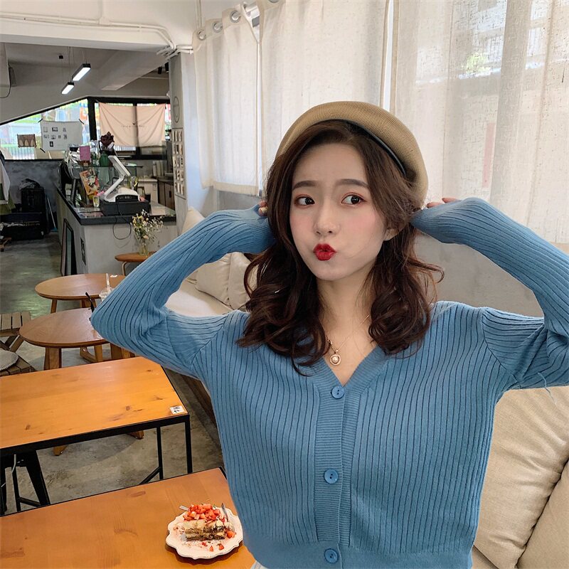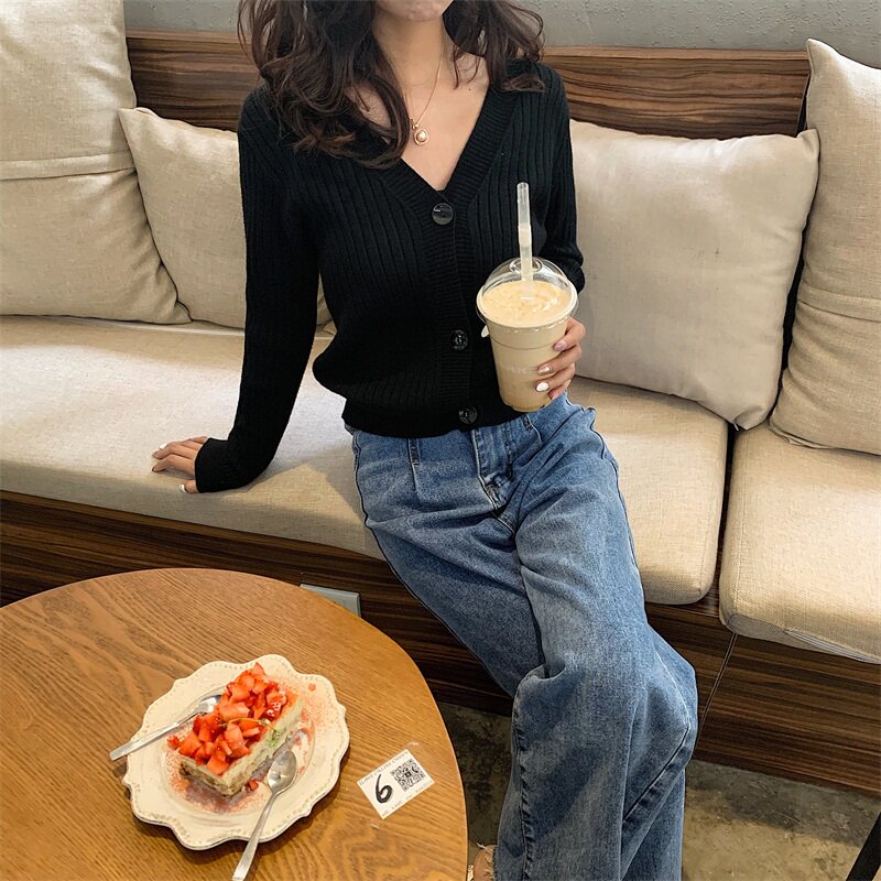 Весенний осенний кардиган, тонкий трикотажный лонгслив, коллекция 2021, французский стиль