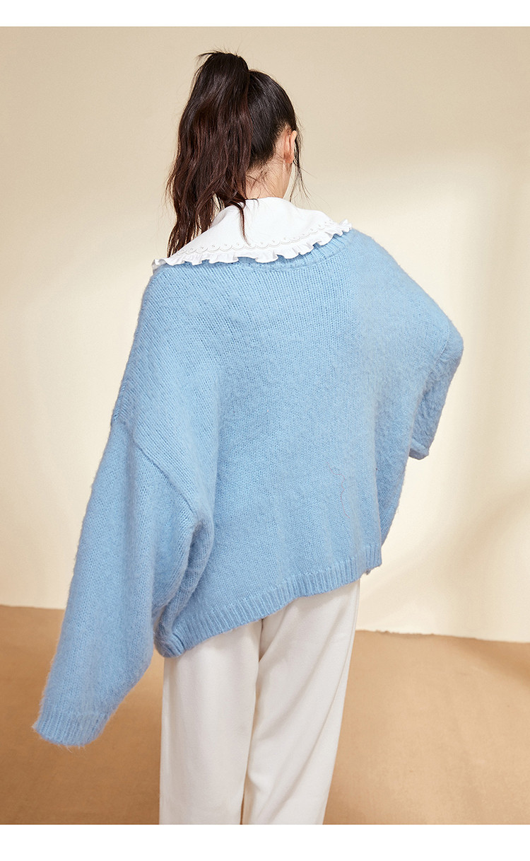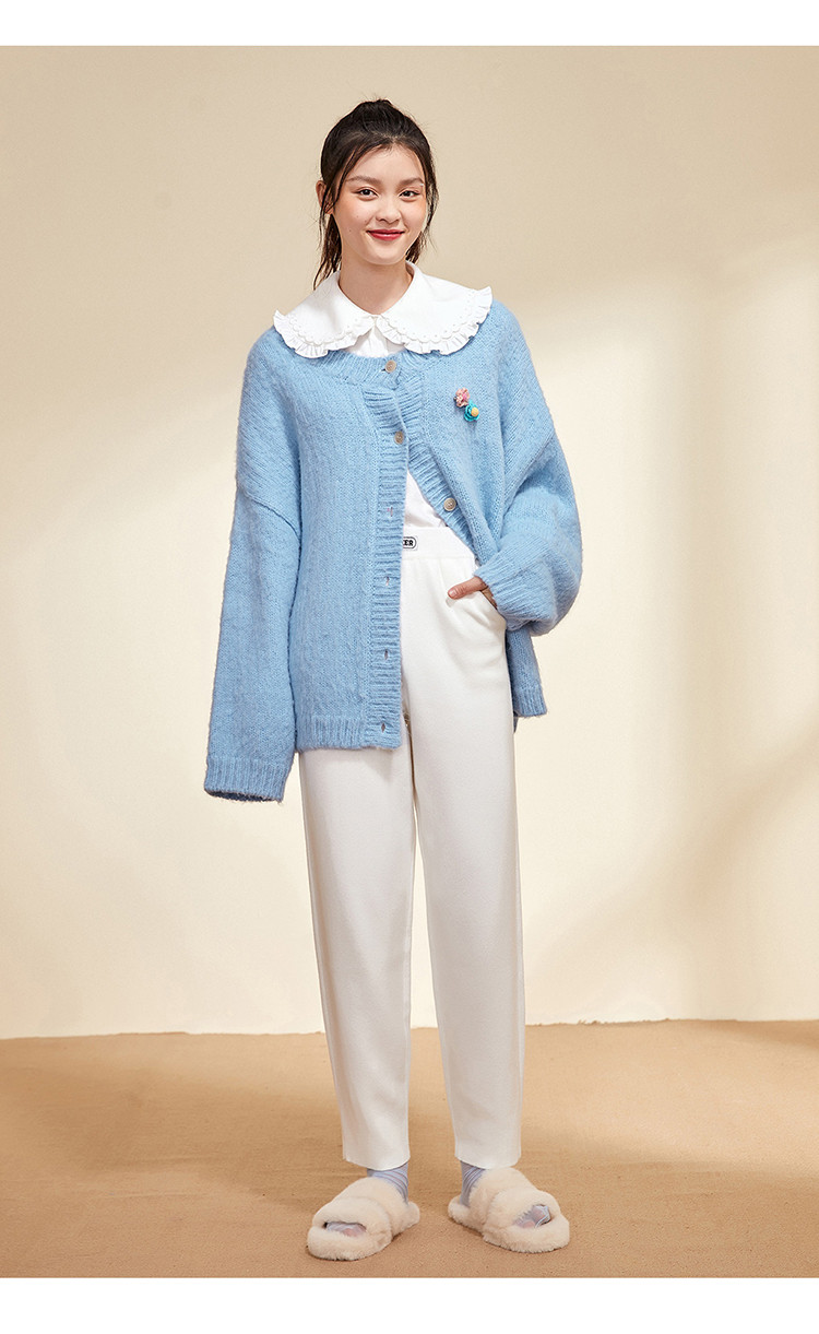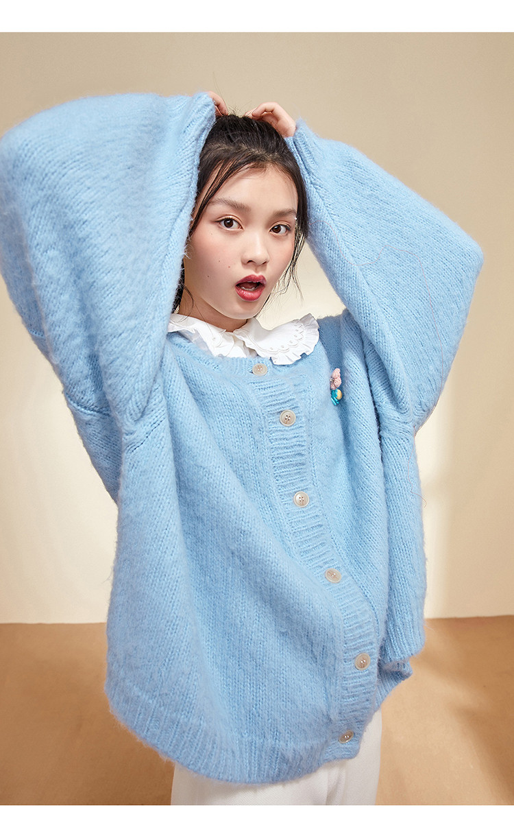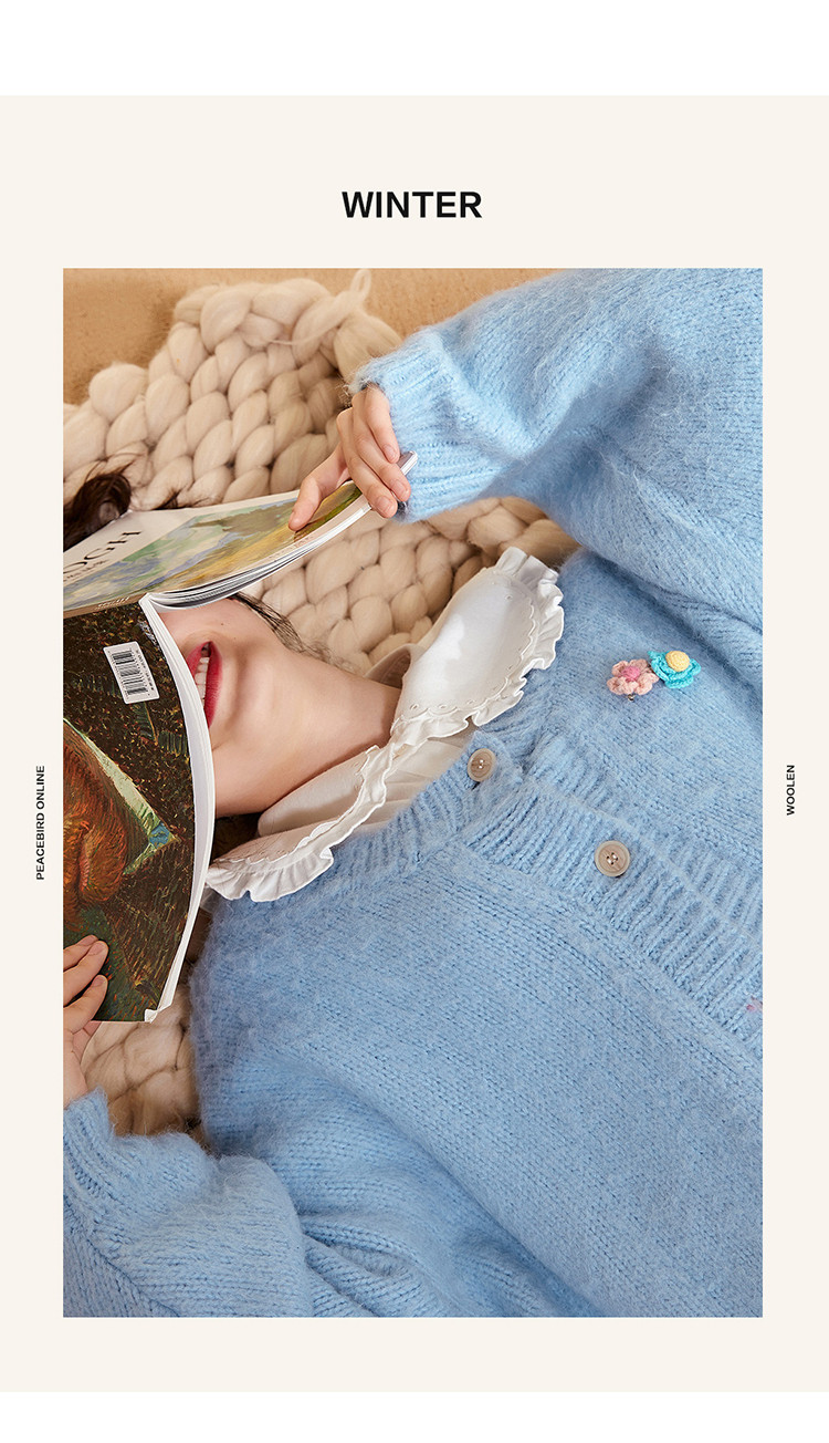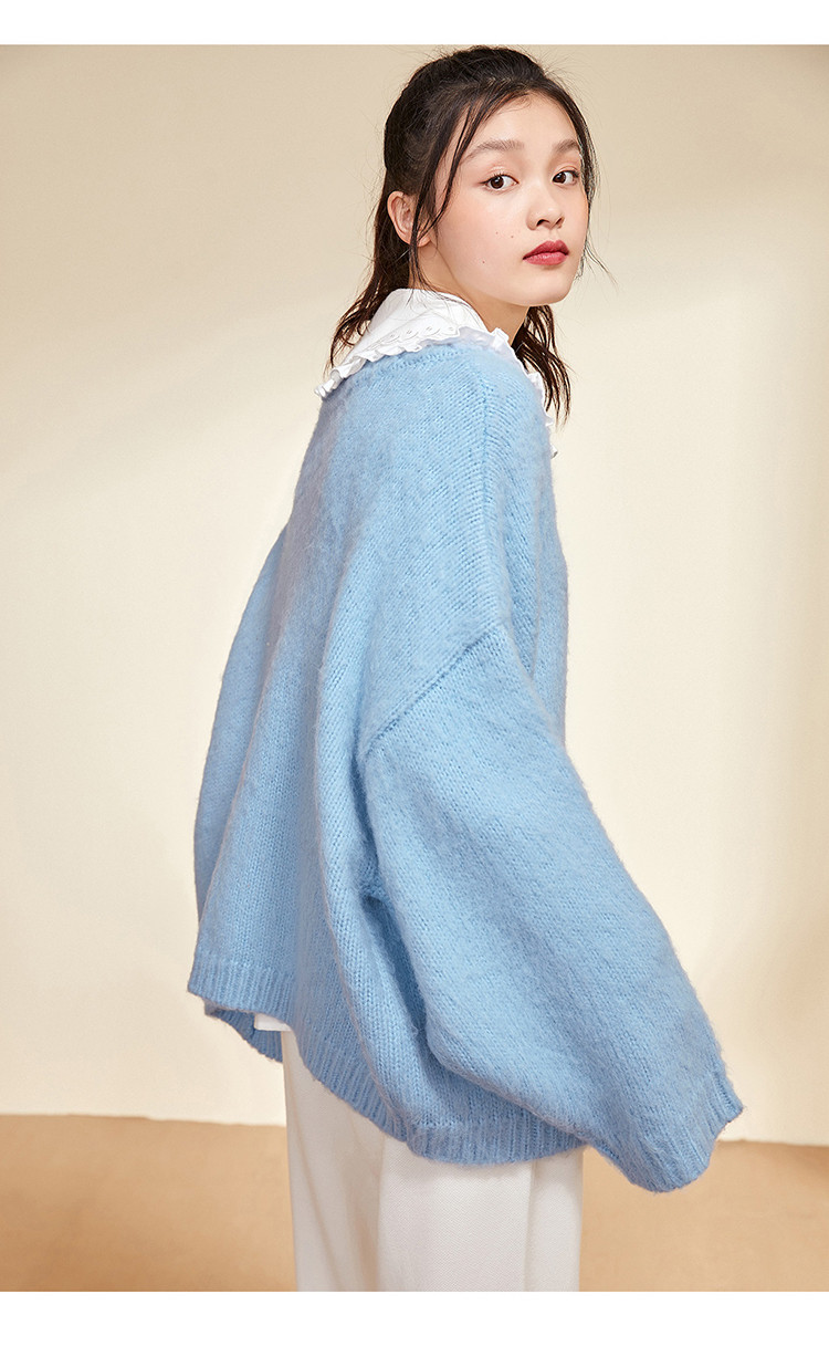 Синий зимний кардиган с круглым воротником, элегантный комфортный свитер, 2020