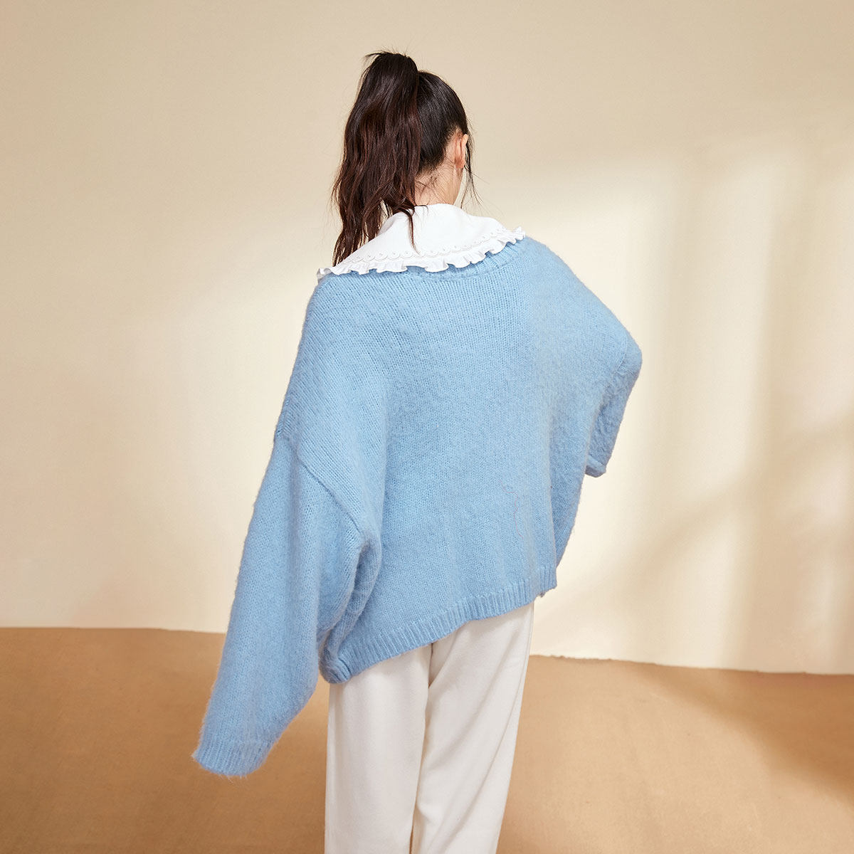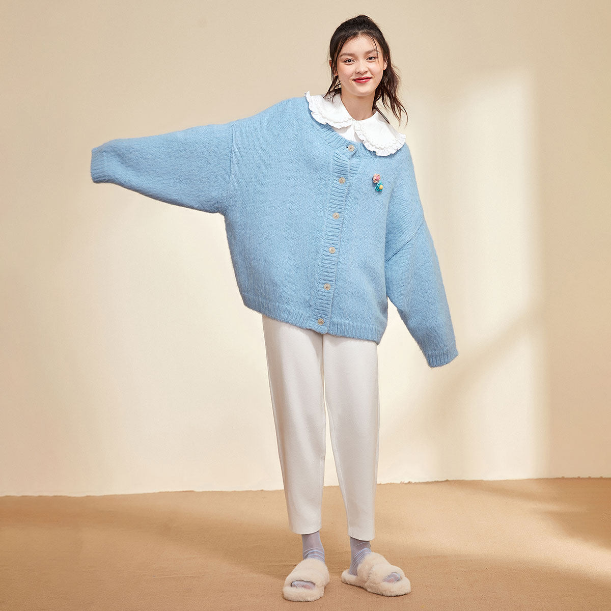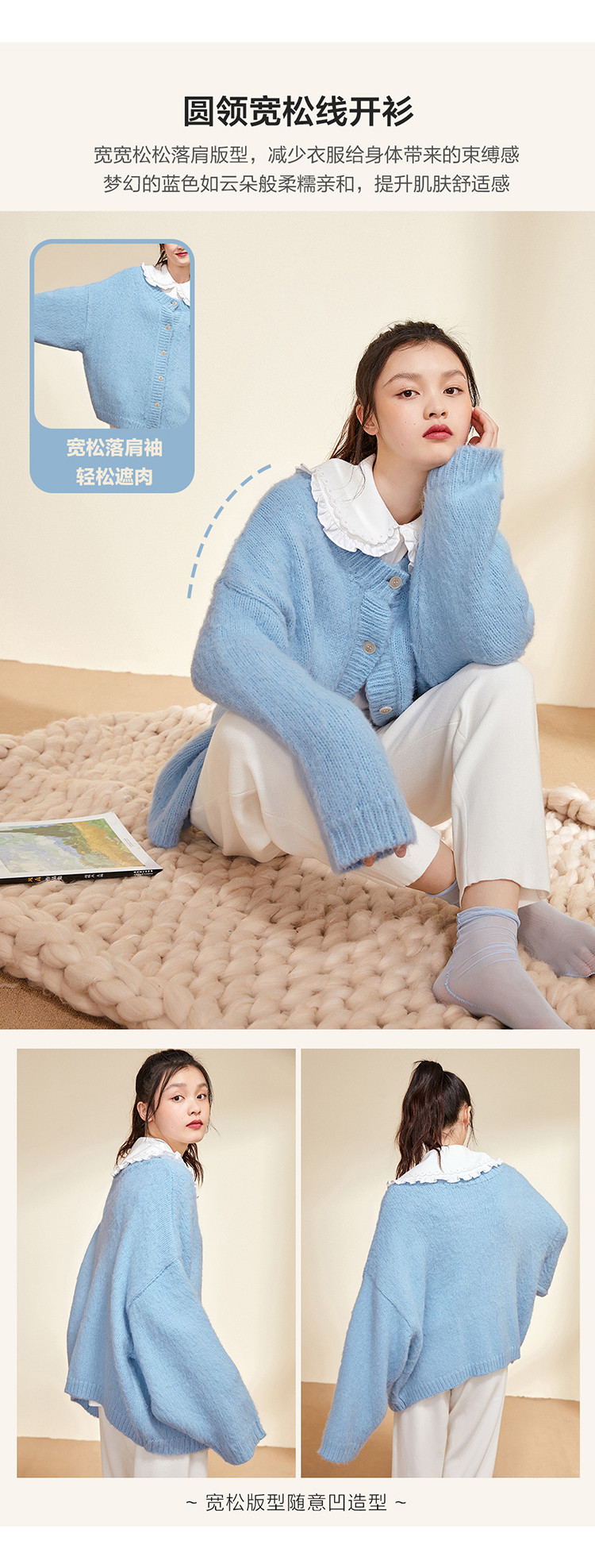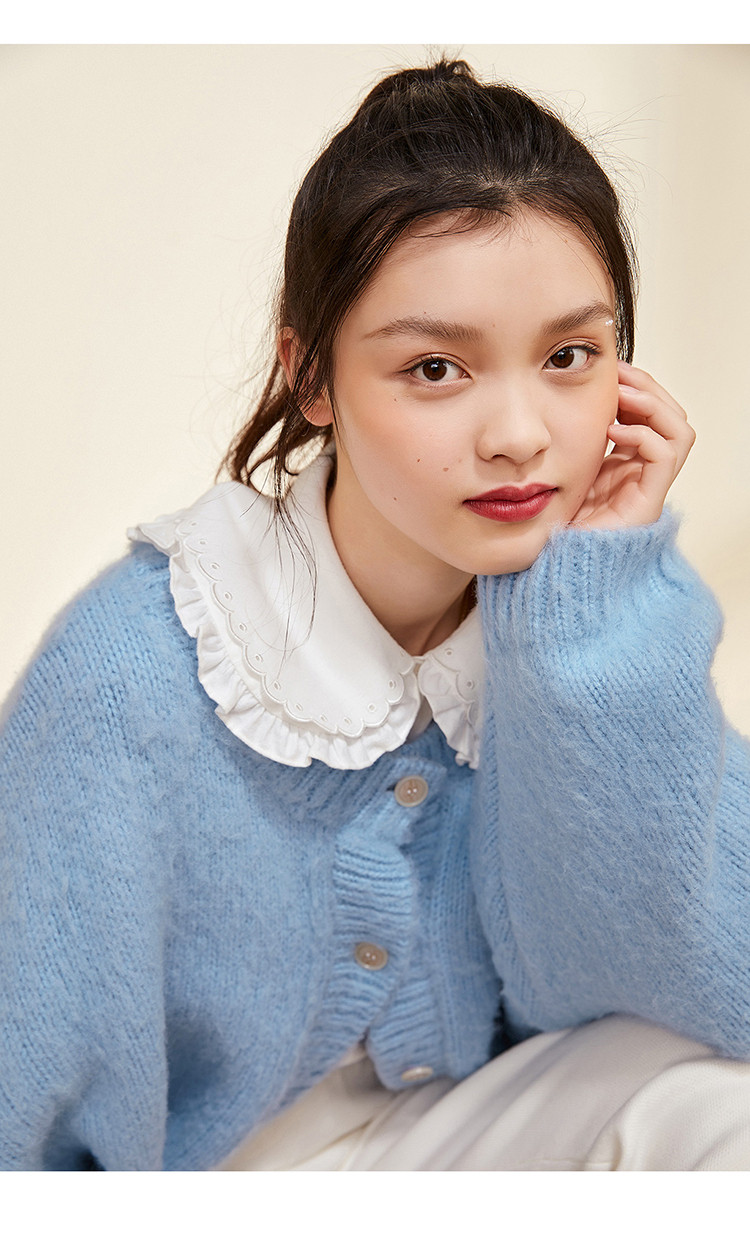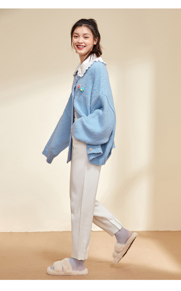 Синий зимний кардиган с круглым воротником, элегантный комфортный свитер, 2020