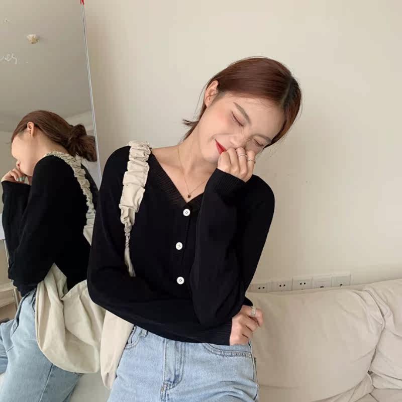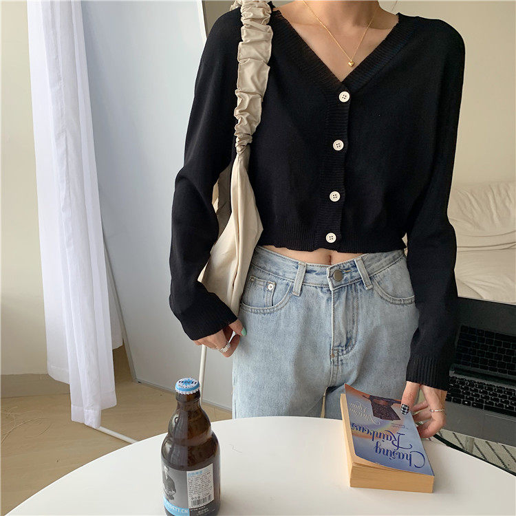 Осенний сексуальный шелковый лонгслив, трикотажный приталенный короткий кардиган, 2020, V-образный вырез